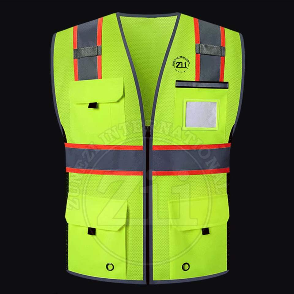 เสื้อกั๊กนิรภัยคลาส2สะท้อนแสงสำหรับงานก่อสร้างชุดป้องกันโพลีเอสเตอร์กันน้ำสำหรับขับขี่รถจักรยานยนต์ zunezi