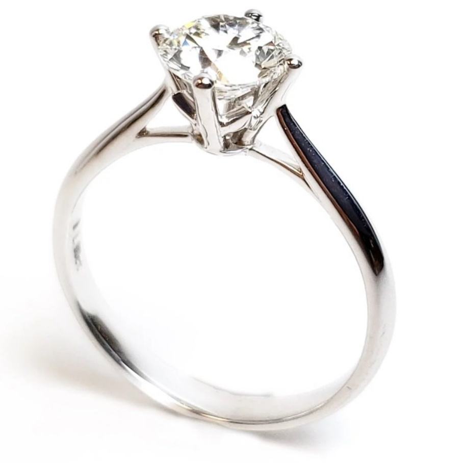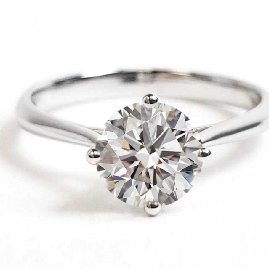 แหวนแต่งงานทรงกลมคลาสสิก 1.0 กะรัต เงินแท้ 925 ชุบไวท์โกลด์ 4 กรงเล็บ ประดับเพชรโมอิสซาไนต์ เกรด D/VVS สำหรับผู้หญิง