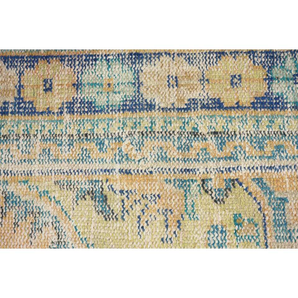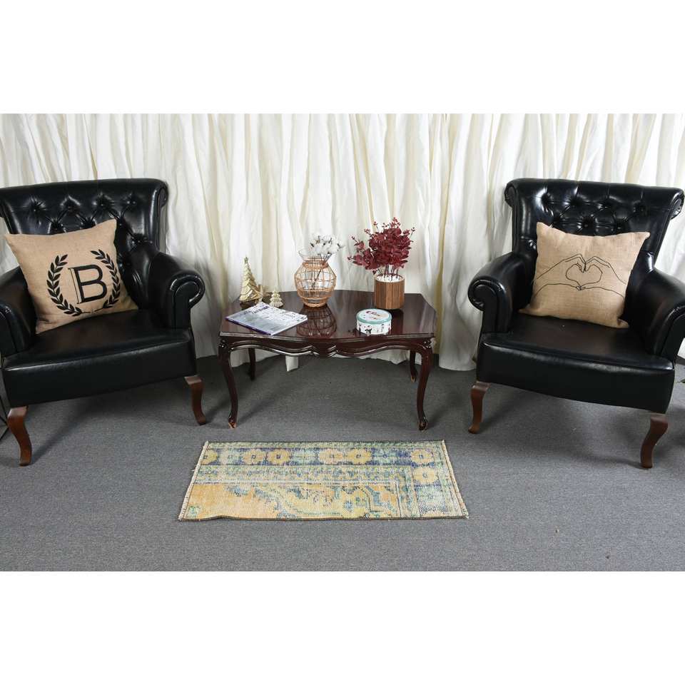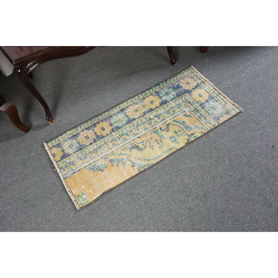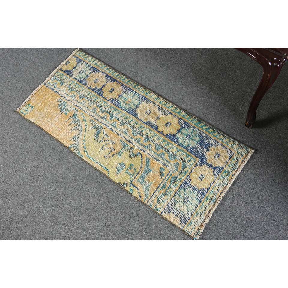 พรมขนสัตว์ตุรกี1.5 x 3.2ft แบบคลาสสิกงานเย็บปะสีเหลืองสีน้ำเงินงานปะติดพื้นที่ขนาดใหญ่ทำด้วยมือสำหรับห้องโถงห้อง