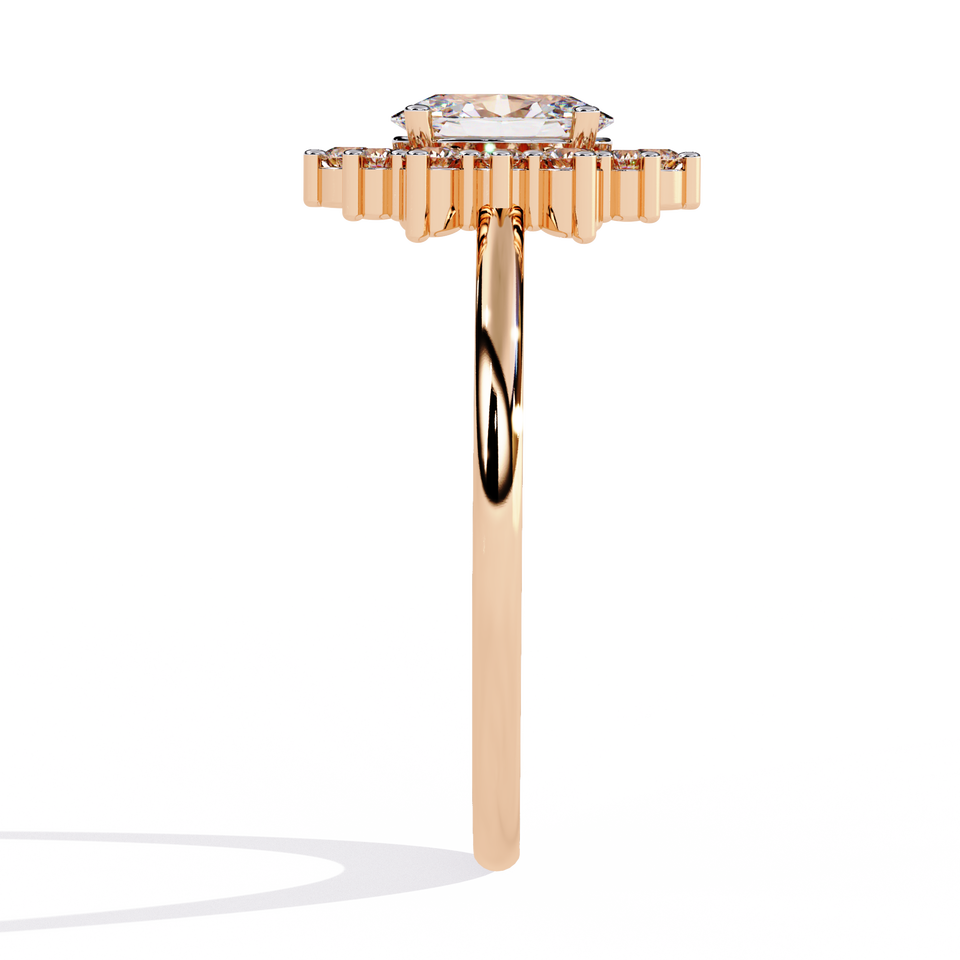 แหวนหมั้นเพชรทรงรีคลาสสิก 1 กะรัต เพชรเลี้ยงในห้องปฏิบัติการ สไตล์วินเทจ ทองคำ 14k ชุบโรเดียม สวมใส่ได้ทุกวัน ดีไซน์วงแหวนแบบเรกอล ฮาโล คลัสเตอร์