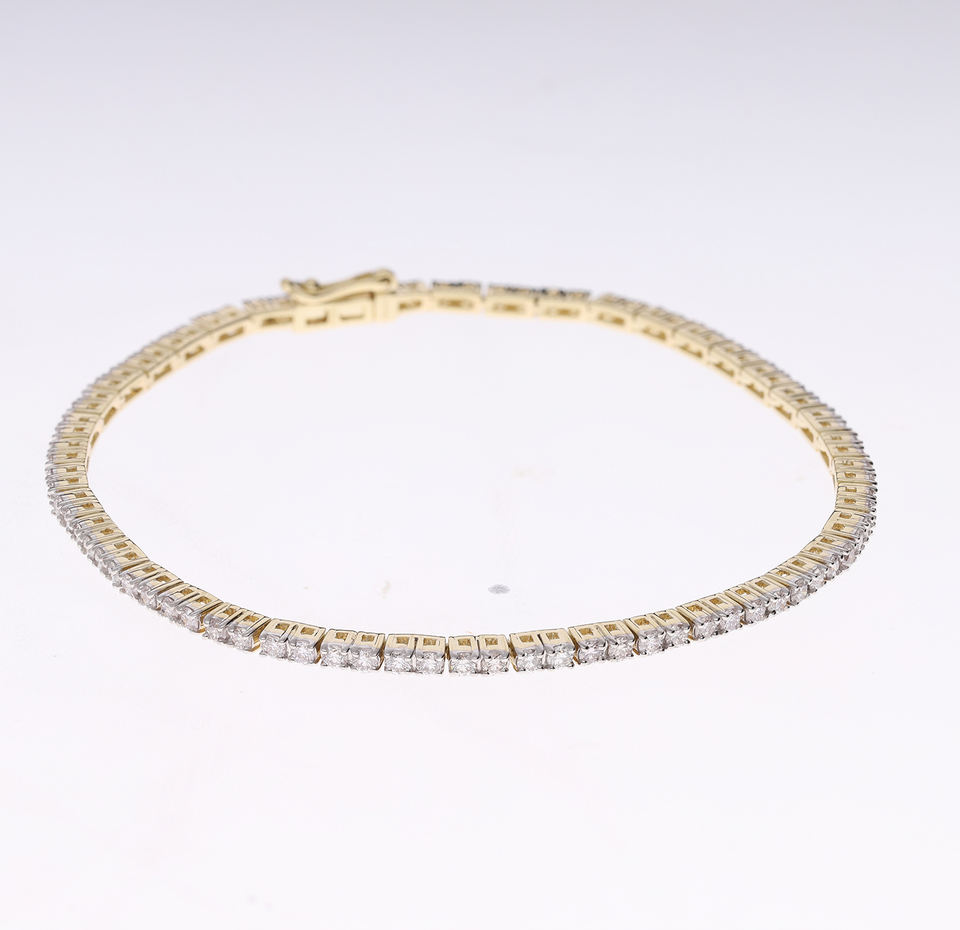 สร้อยข้อมือเทนนิสสีทอง14K สุดคลาสสิกสร้อยข้อมือเพชร2.94CTW เจียระไนแบบธรรมชาติ
