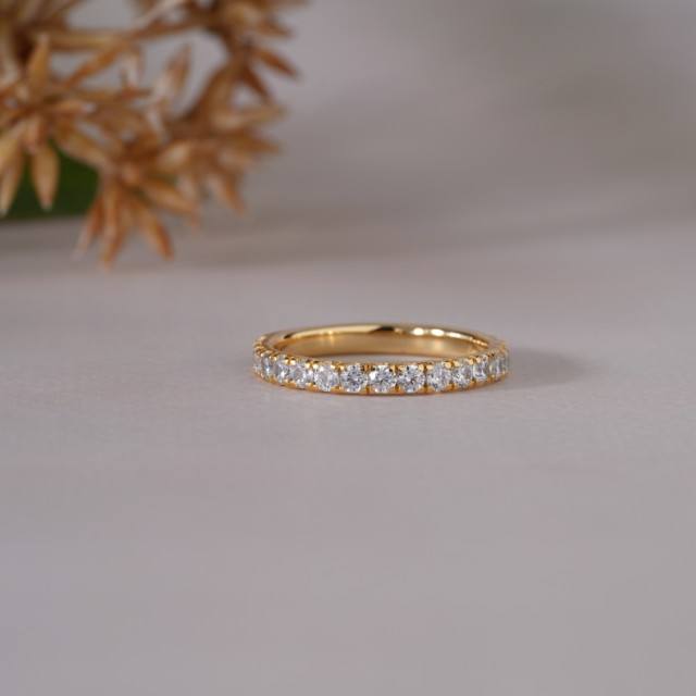 แหวนแต่งงานแบบคลาสสิก ทอง 14K ประดับเพชรโมอิสซาไนต์ทรงกลม ดีไซน์หรูหรา แหวนนิ้วแบบ Eternity Band สำหรับผู้หญิง ของขวัญวันครบรอบ