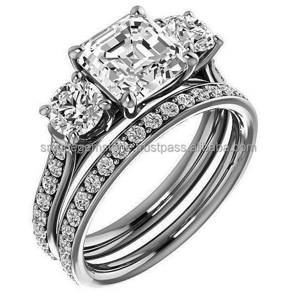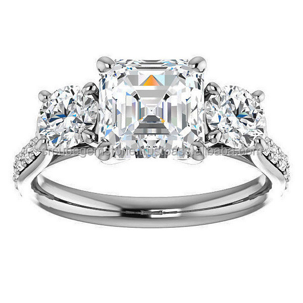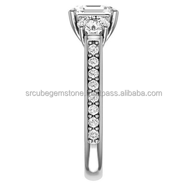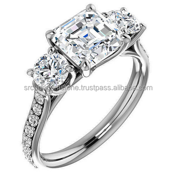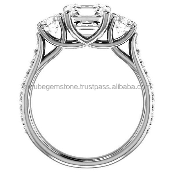 คลาสสิก14พันสีขาวทองโค้งแหวนหมั้นดูหรูหราสามหินLab Grownเพชรแหวนแต่งงานสําหรับผู้หญิง