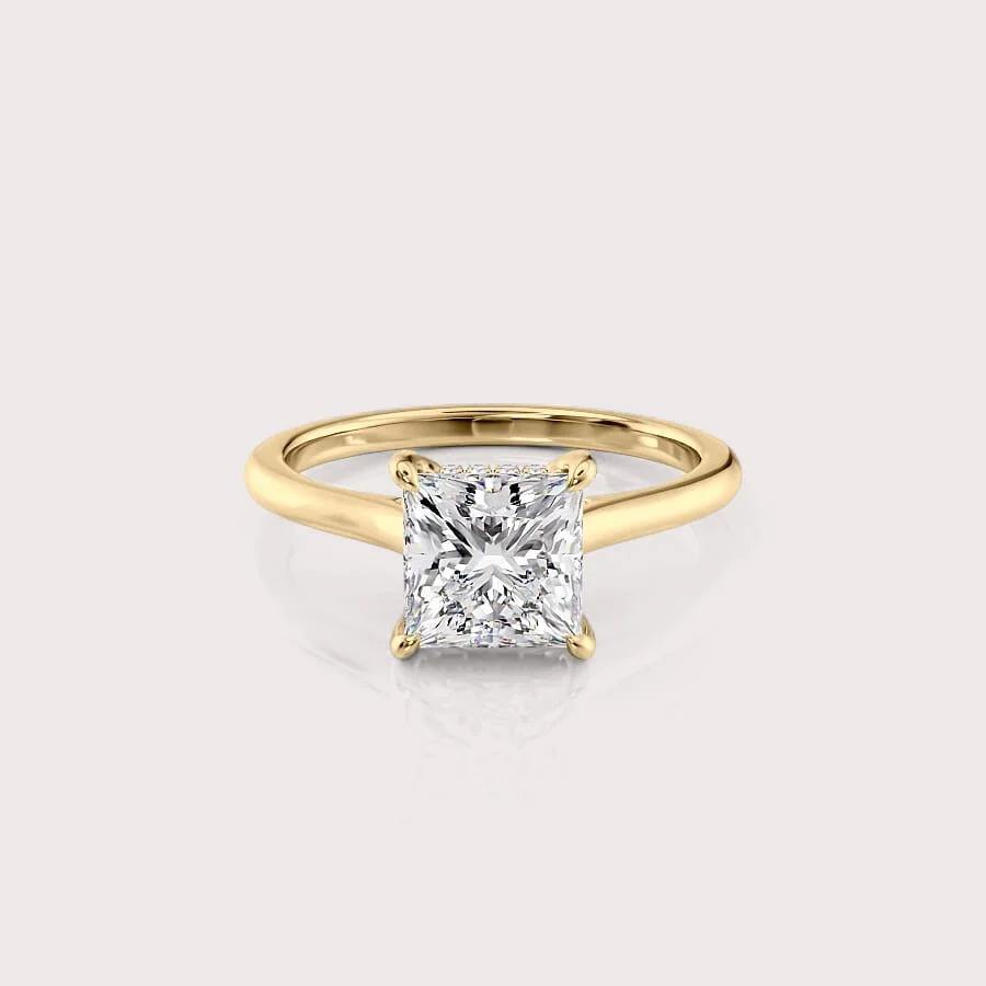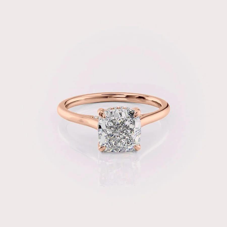 แหวนหมั้นเพชรทรงคุชชั่นคัท เพชรเพาะเลี้ยงในห้องปฏิบัติการ ตัวเดียว ประดับบนตัวเรือนทองคำ 18K สีเหลือง / สีขาว และสีโรสโกลด์