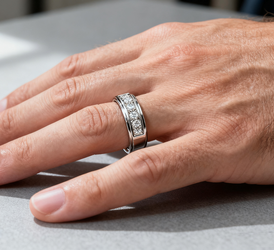 แหวนแต่งงานทรงเรขาคณิตประดับโมอิสซาไนต์ 2.50 กะรัตแบบคลาสสิก สไตล์ฮิปฮอปสำหรับผู้ชาย ดีไซน์หรูหรา ทำจากเงินแท้ 925 ประดับหินห้าเม็ด