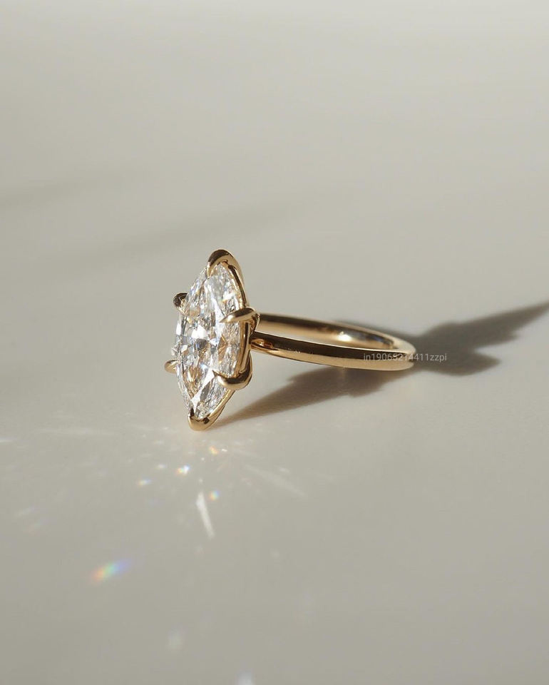 แหวนเพชรโมอิสอัญมณีสำหรับผู้หญิง2.50คลาสสิกแหวนหมั้นแบบยาว