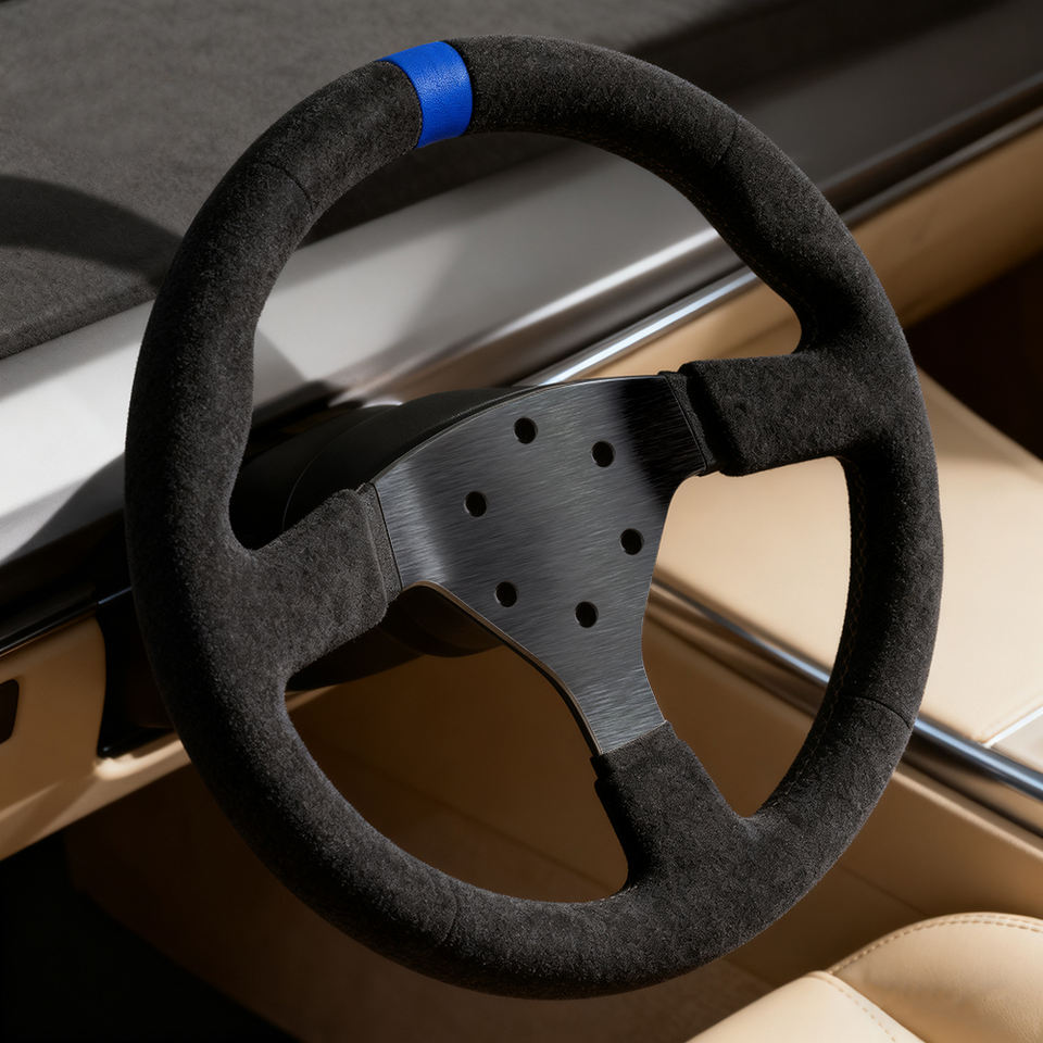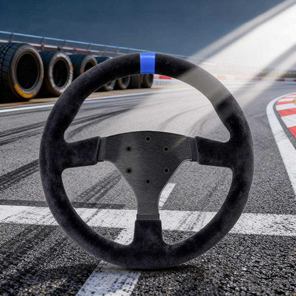 พวงมาลัยรถแข่งแบบคลาสสิก 330 มม. รุ่นปรับแต่งพิเศษ หุ้มอัลคันทาร่าสีน้ำเงิน ยี่ห้อท็อปมาร์ค ใช้ได้กับรถแข่งทั่วไป สไตล์ JDM สำหรับเกมแข่งรถ