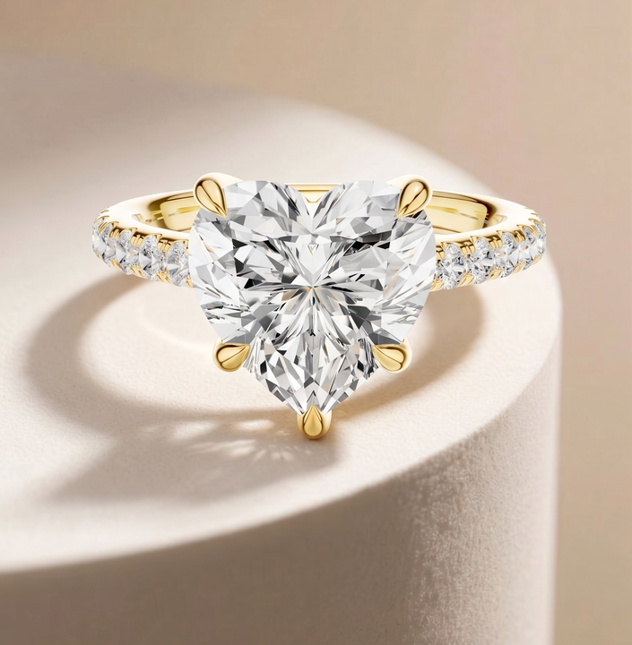 แหวนหมั้นเพชรทรงหัวใจ 4 กะรัต แบบคลาสสิกสำหรับผู้หญิง ทอง 10K/14K/18K/22K ชุบโรเดียม ได้รับการรับรองจาก IGI