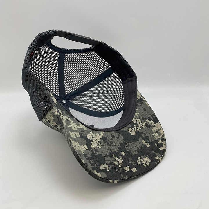 หมวกวิ่งตาข่าย6แผงแบบคลาสสิกหมวกกีฬาผ้าฝ้ายสีฟ้าหมวกกีฬาทรูเกอร์ปรับโลโก้ได้ตามต้องการ
