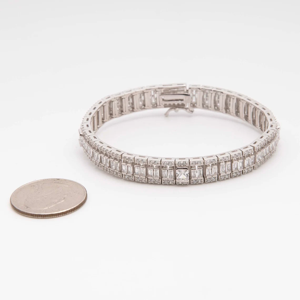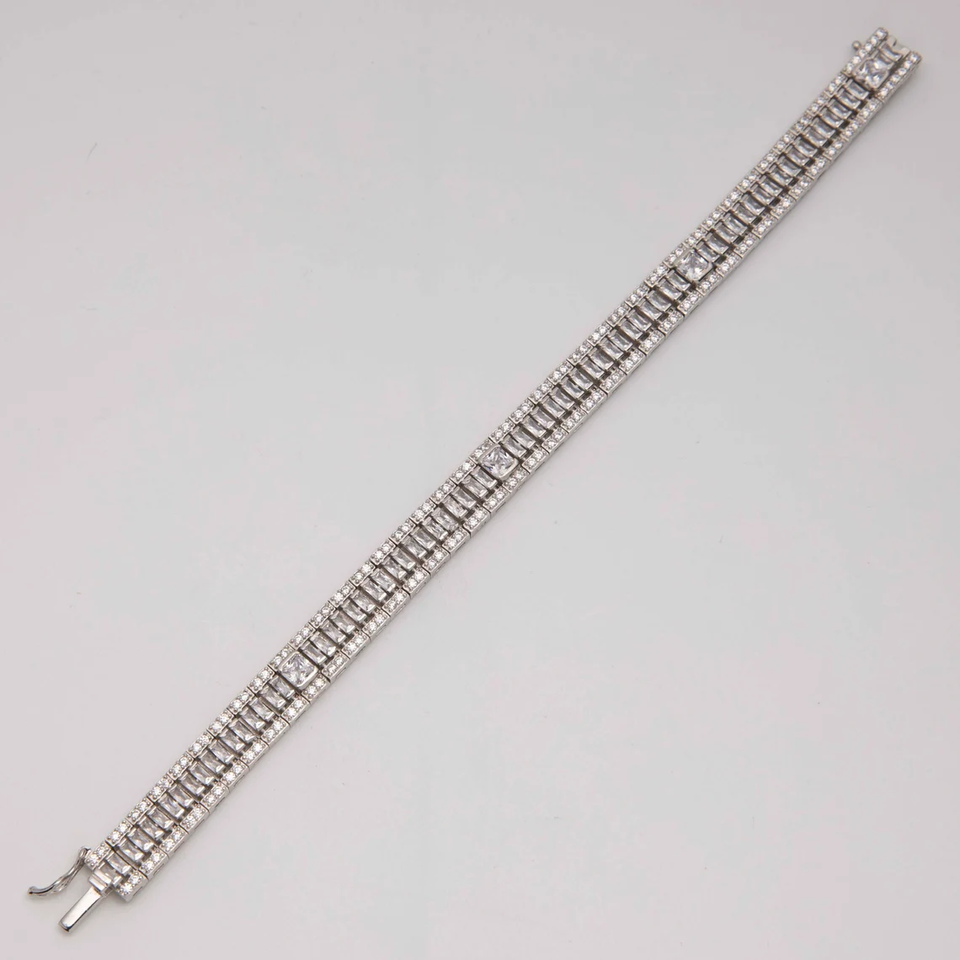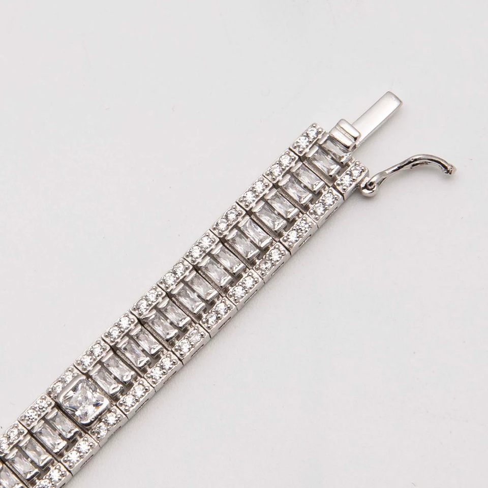 สร้อยข้อมือเทนนิสตัดเจ้าหญิงสามแถว7มม. คลาสสิกสเตอริงเงินแท้ชุบทองคำขาวเพชรโมอิสเครื่องประดับแฟชั่น IEC