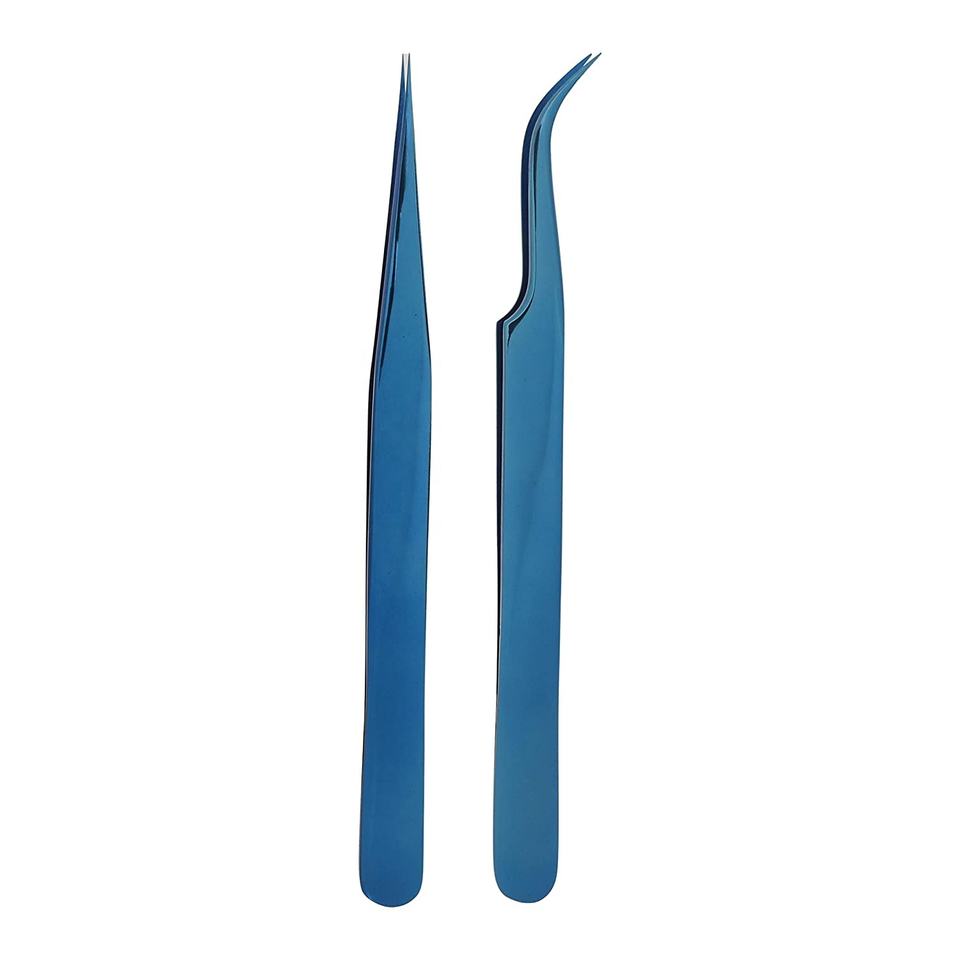ชุดแหนบสเตนเลสสตีลสีน้ำเงินแบบคลาสสิก90องศาสำหรับการต่อขนตาอุปกรณ์เสริมความงามคิ้ว
