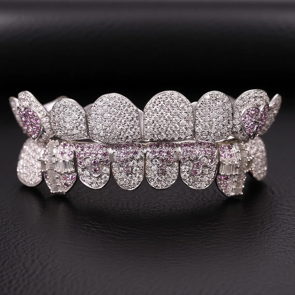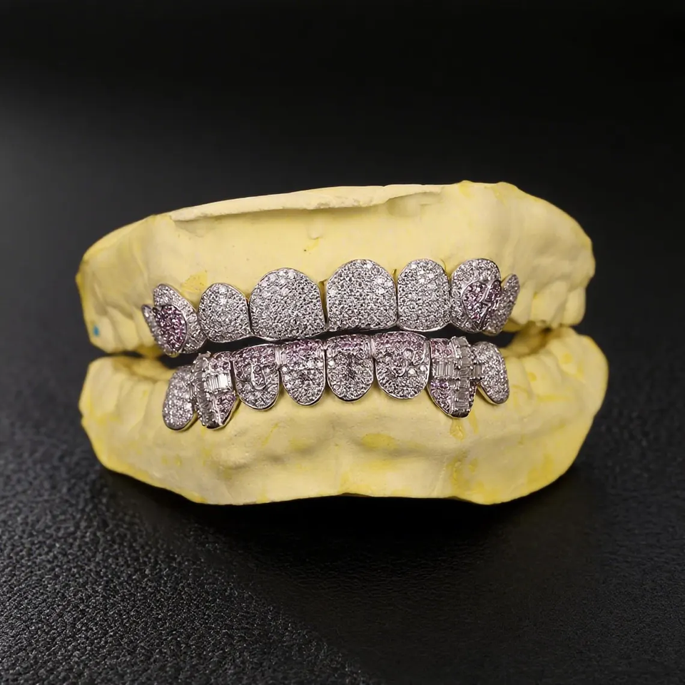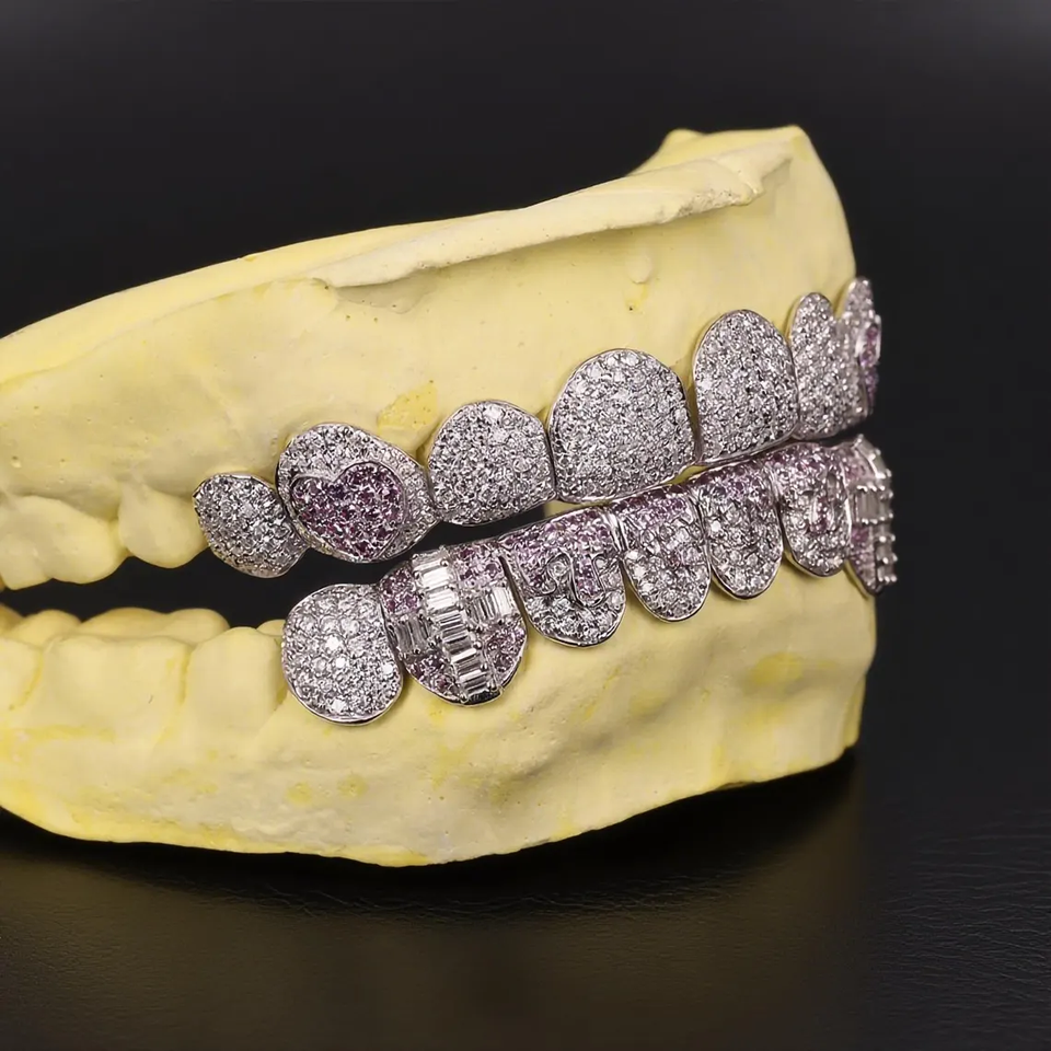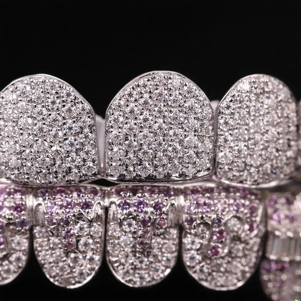 กริลล์ซเงินแท้ 925 แบบคลาสสิก ประดับเพชรโมอิสซาไนต์ทรงกลมแบบไมโครเพฟเต็มตัว รูปทรงวงรี สำหรับโอกาสครบรอบ