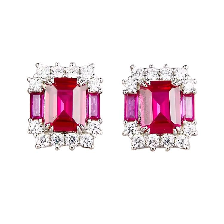 ต่างหูเม็ดเดี่ยวเซอร์โคเนียสีแดงเงิน925คลาสสิกของขวัญสุดหรูดีไซน์โรเดียมและชุบทอง