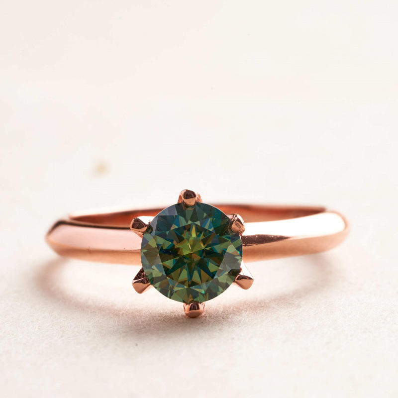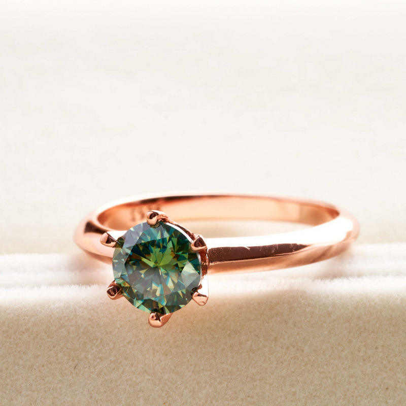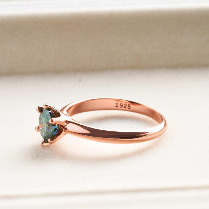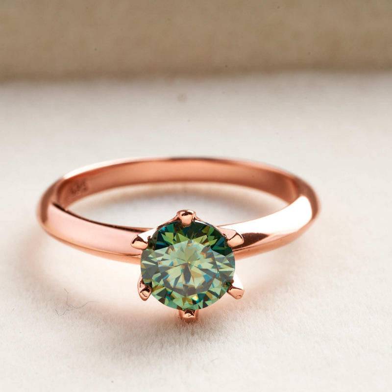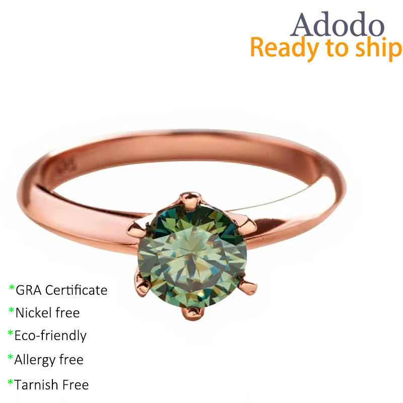 แหวนแต่งงานเพชรเม็ดเดี่ยวทรงกลมคลาสสิก เงินแท้ 925 ชุบทองคำขาว ประดับมอสซาไนต์สีน้ำเงินเขียว 0.5 กะรัต ถึง 5 กะรัต ระดับความสะอาด VVS พร้อมใบรับรอง GRA
