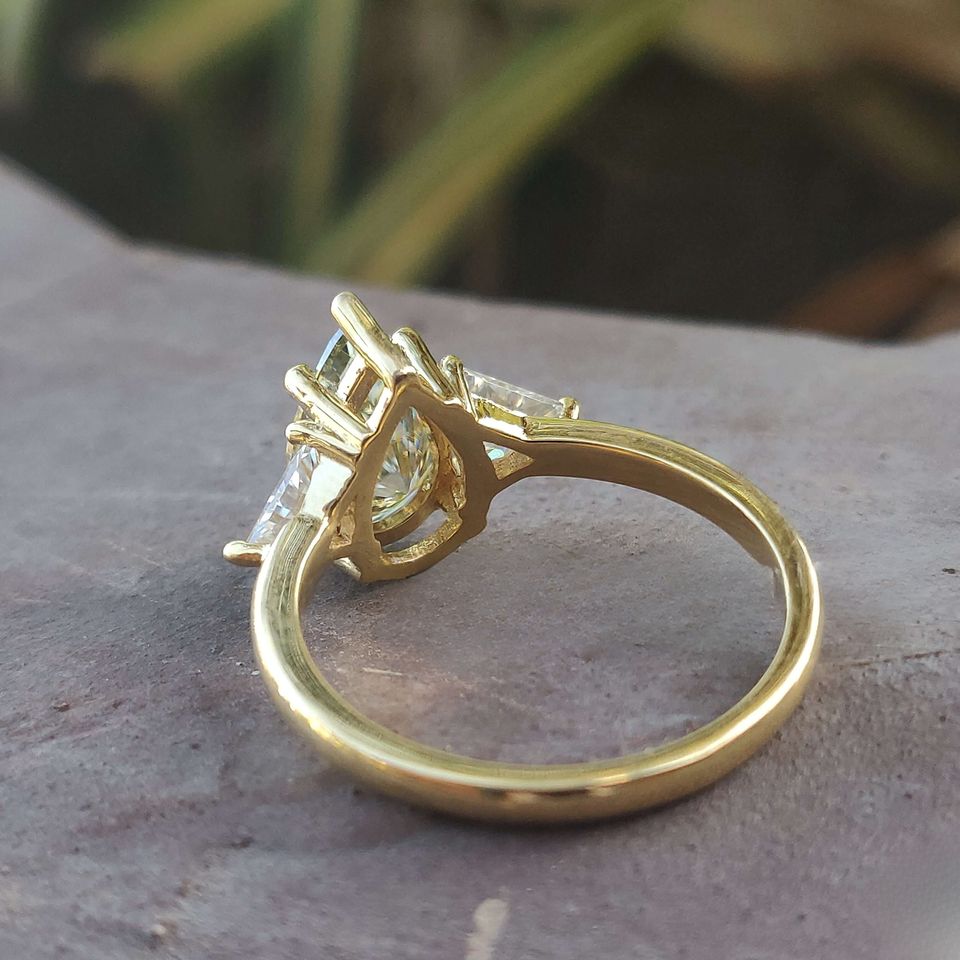 แหวนหมั้นแต่งงานเงิน925คลาสสิกสำหรับผู้หญิงสามลูกแพร์หินสามล้านล้านเพชรโมอิสสำหรับวันครบรอบ