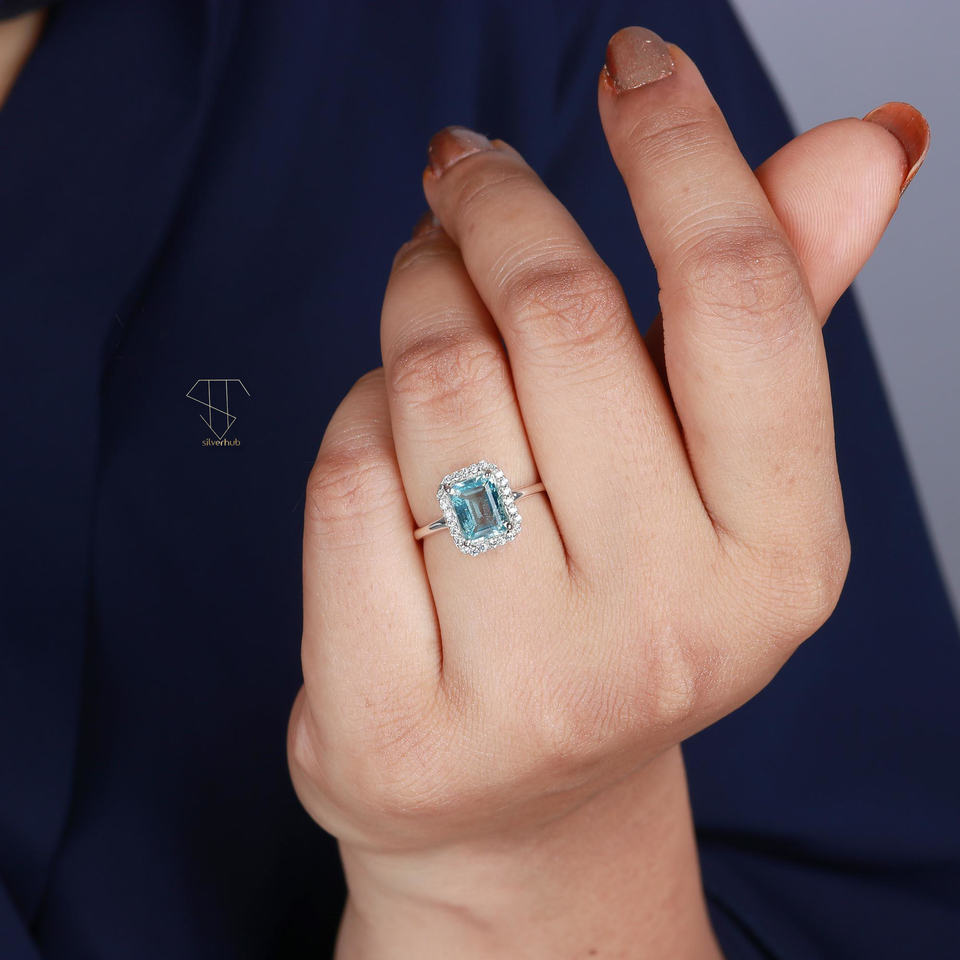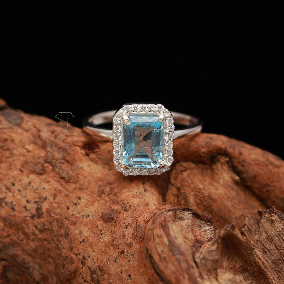 925คลาสสิกเครื่องประดับเงินสเตอร์ลิงแหวนพลอยสีฟ้าน้ำทะเลธรรมชาติที่มีรูปลักษณ์ที่สง่างามและการออกแบบที่ดีคลาสสิก