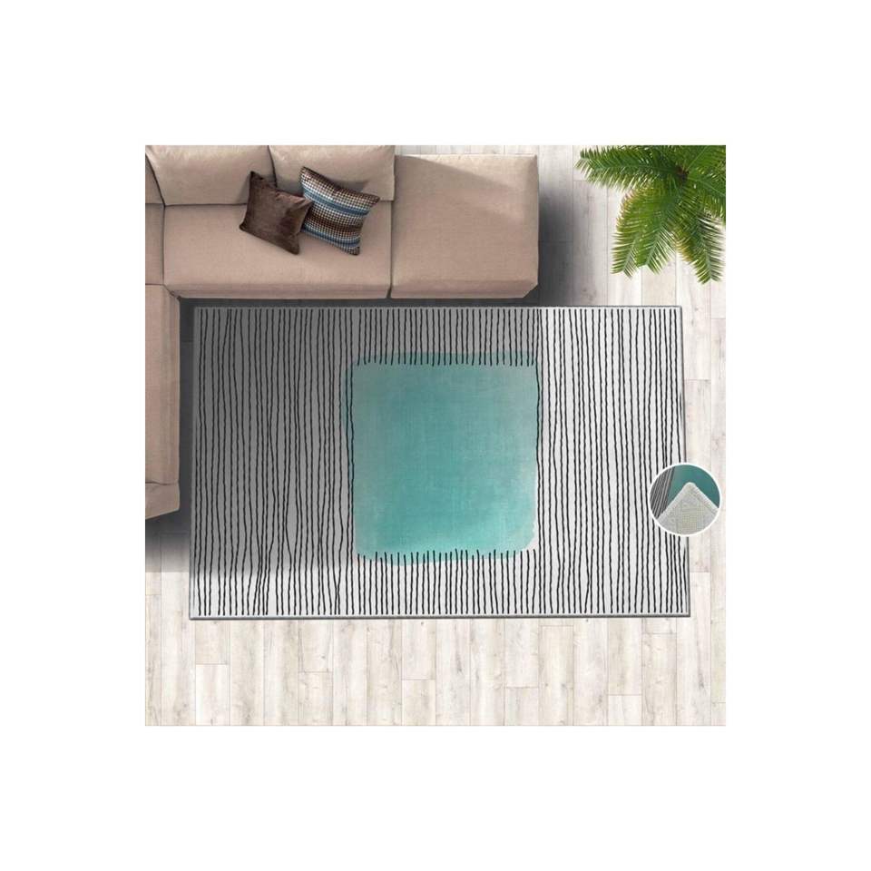พรมโพลีเอสเตอร์ลายเส้นสีเทอร์ควอยซ์ลายแอบสแตรกคลาสสิกสำหรับวัยรุ่นทางเข้าห้องนั่งเล่นพรมพิมพ์ลายดิจิทัล