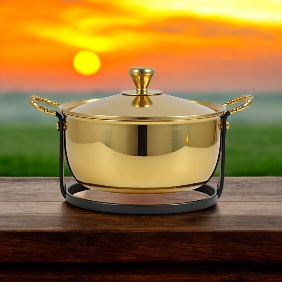 หม้ออะลูมิเนียมคลาสสิก หม้อต้มซุป หูจับคู่ น้ำหนักเบา ใช้กับเครื่องล้างจานได้ ใช้กับเตาแก๊สและเตาแม่เหล็กไฟฟ้าได้ ความจุขนาดใหญ่ สีทอง