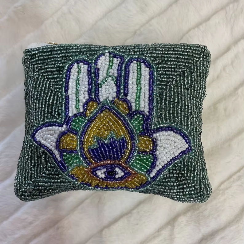 กระเป๋าใส่เหรียญลูกปัดลายการ์ตูนคลาสสิก ทำมือ สีแดง ขาว น้ำเงิน พิมพ์ลายตัวอักษร ซิปปิด กระเป๋าเดินทางใบเล็ก