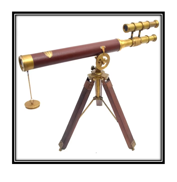 Elegant Antique Handheld Brass Telescope with Wooden Tripod Stand Classic Binoculars