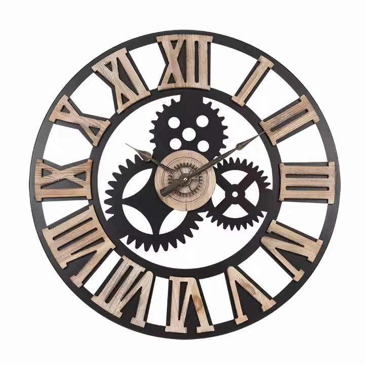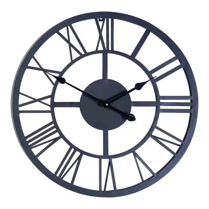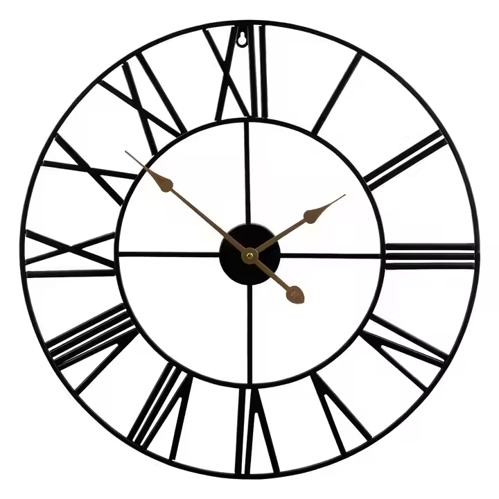 Classic Art Deco Metal Wall Clock round Antique Industrial Iron Skeleton with Roman by Azora Industries