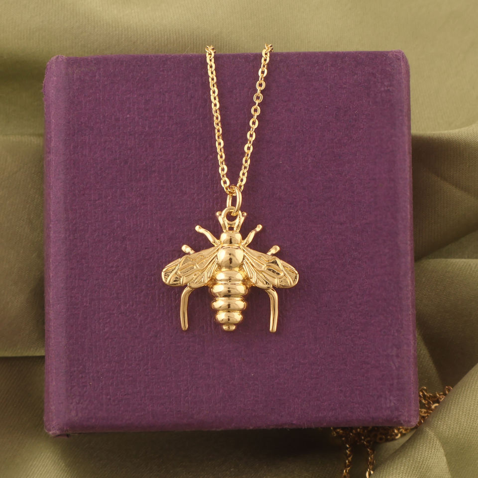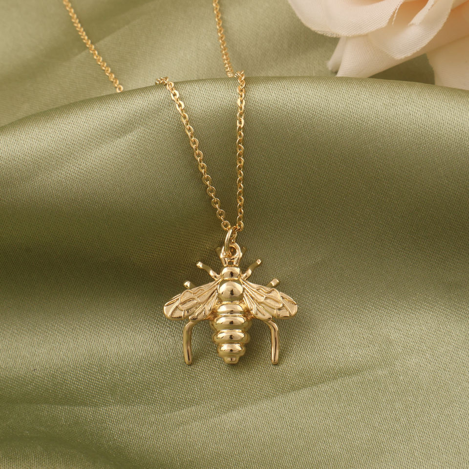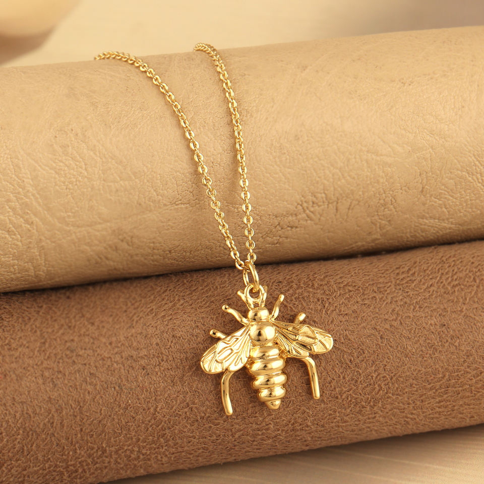 จี้สร้อยคอรูปผึ้งสไตล์อาร์ตเดโคคลาสสิก ดีไซน์จากธรรมชาติ ชุบทอง 18K ทำจากทองเหลืองแท้ ป้องกันการแพ้ เหมาะสำหรับผู้หญิง