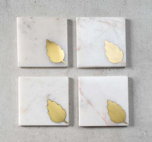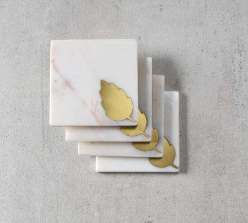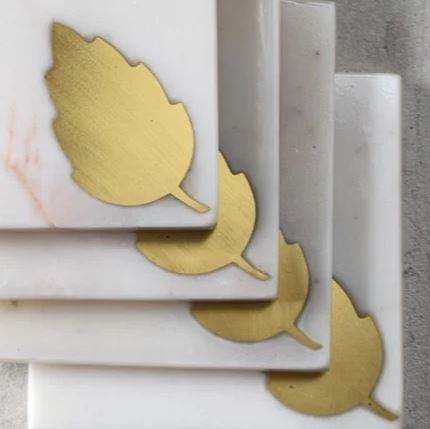 ชุดงานฝีมือคลาสสิก 4 ชิ้น แผ่นรองและแผ่นรองอาหารหินอ่อนสีธรรมชาติรักษ์โลก
