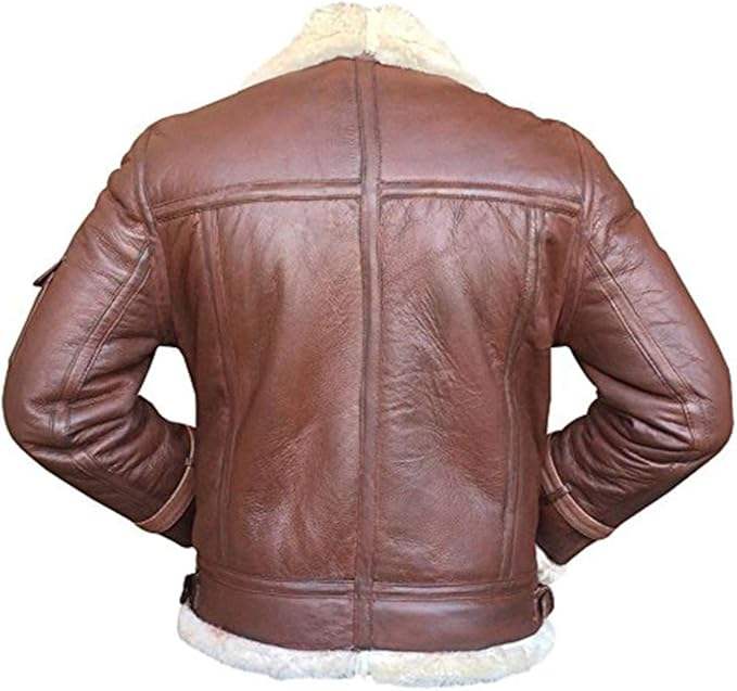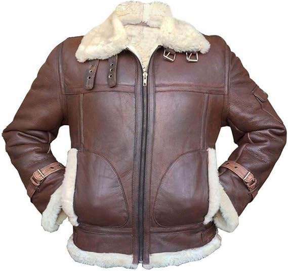 เสื้อแจ็คเก็ตหนังแกะ B-3คลาสสิกสำหรับผู้ชายเสื้อโค้ทฤดูหนาวแบบขนแกะอังกฤษ
