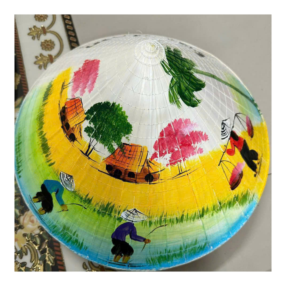 หมวกทรงกรวยใบปาล์มคลาสสิกหมวกฟางแบบเอเชียน้ำหนักเบาพร้อมสายรัดคางที่ปรับได้เหมาะสำหรับการป้องกันแสงแดดตกแต่ง