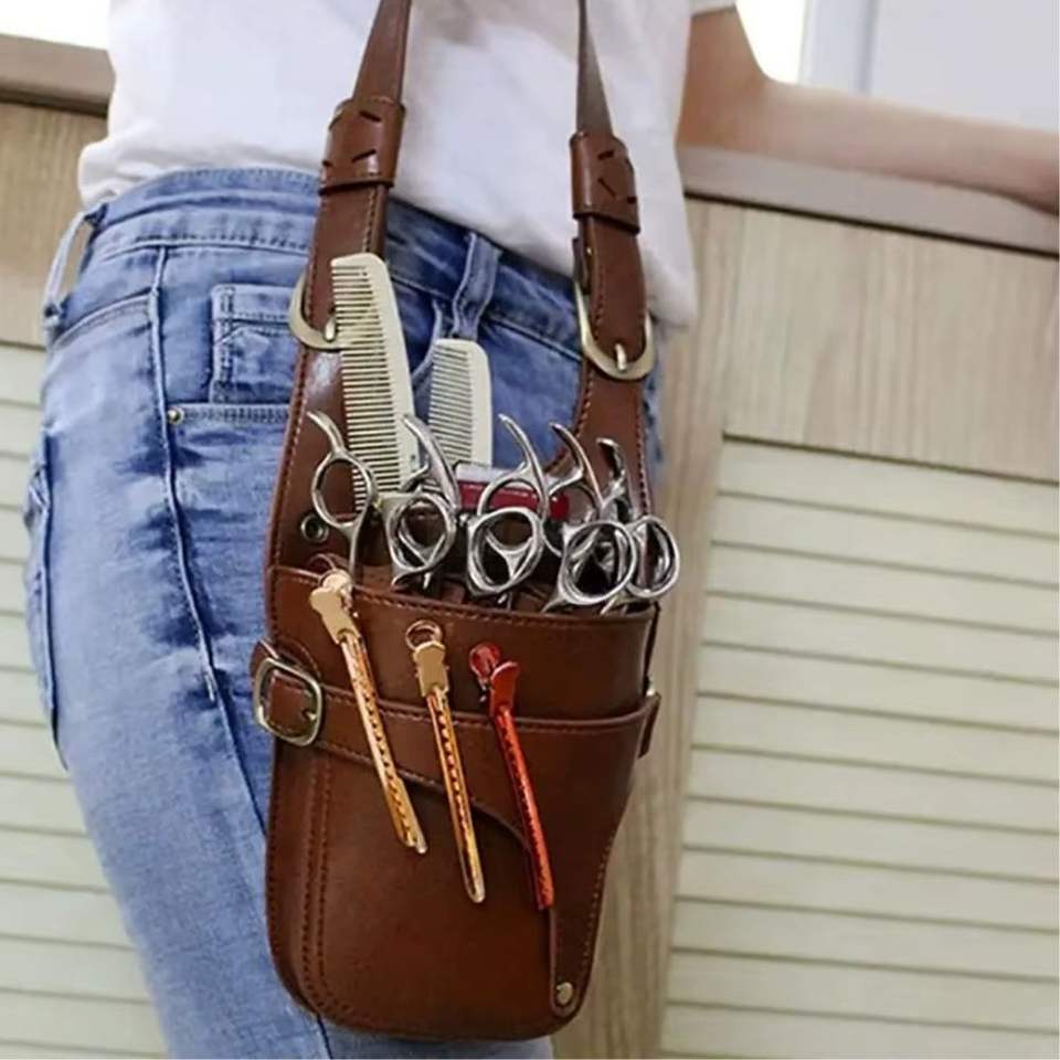 ซองใส่กรรไกรตัดผมหนังแท้สีน้ำตาลทรงคลาสสิค กระเป๋าใส่อุปกรณ์ทำผมขนาดใหญ่ พร้อมเข็มขัดคาดเอว รับผลิตแบบ OEM ODM ตามสั่ง