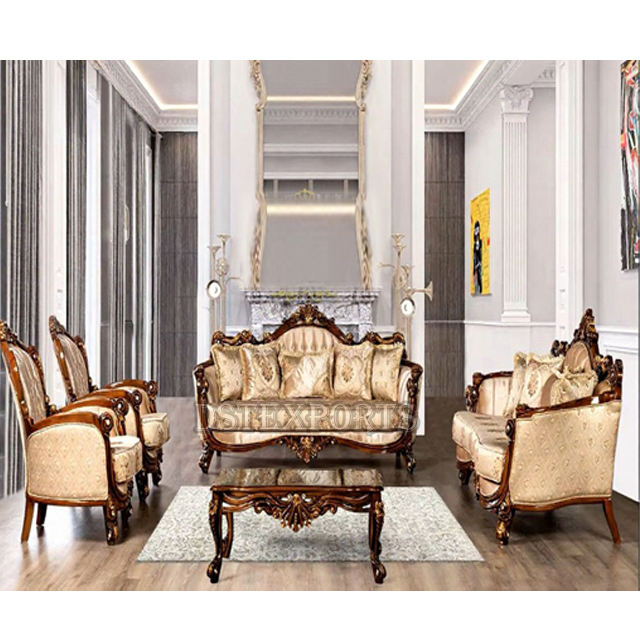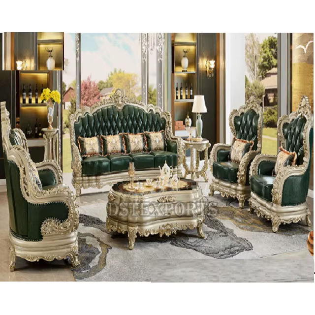 ชุดโซฟาไม้สไตล์คลาสสิกบาโรกสีดำทอง DST Exports เฟอร์นิเจอร์ห้องนั่งเล่นสไตล์อิตาลี ซื้อชุดโซฟาขนาดคิงไซส์ ราคาดีที่สุด