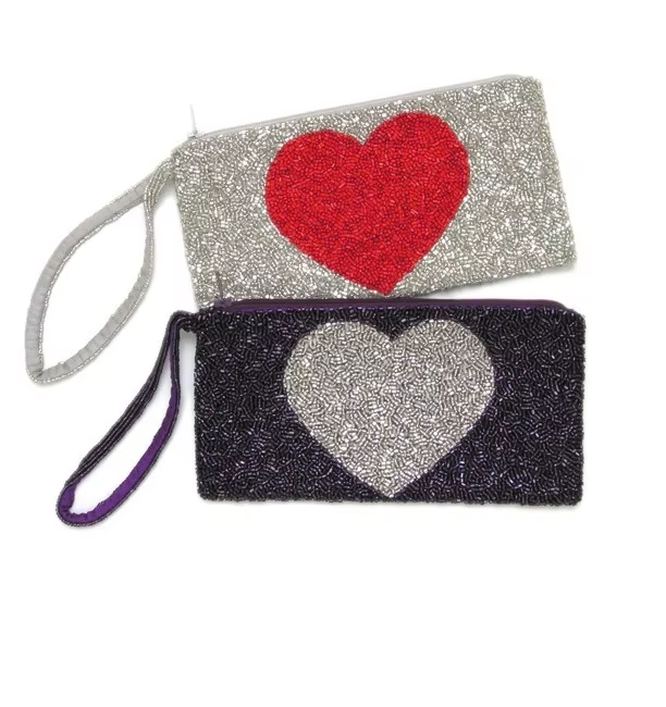 กระเป๋าใส่เหรียญประดับลูกปัดแบบคลาสสิกกระเป๋าใส่เหรียญรูปหัวใจสำหรับทุกเพศของขวัญแต่งงานพร้อมไข่มุกเพชร