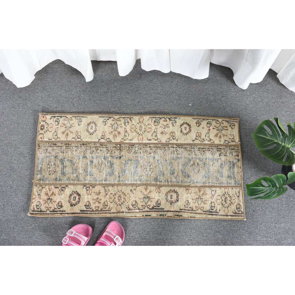 พรมขนแกะสีเบจ1.5x3ฟุตคลาสสิกงานแฮนด์เมดพรมตุรกีสำหรับห้องนั่งเล่นข้างเตียงทรงสี่เหลี่ยมผืนผ้าแผ่นรองยาง