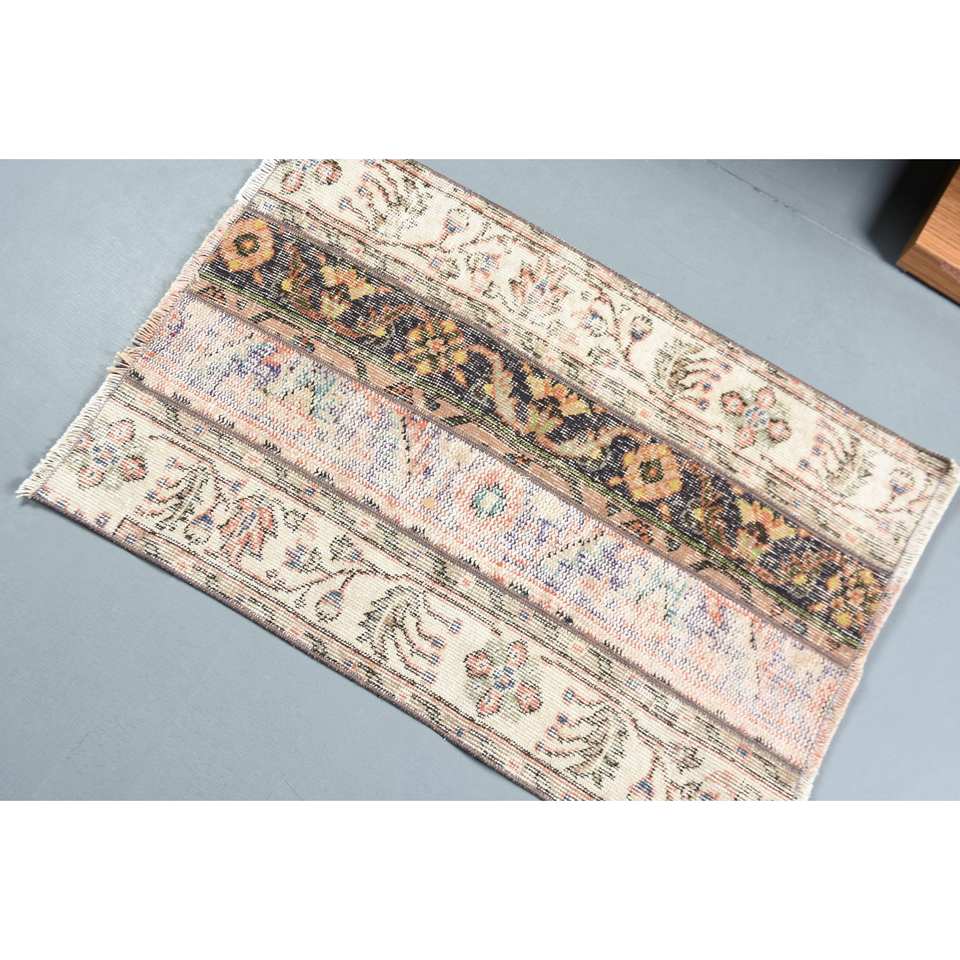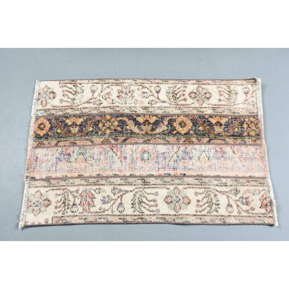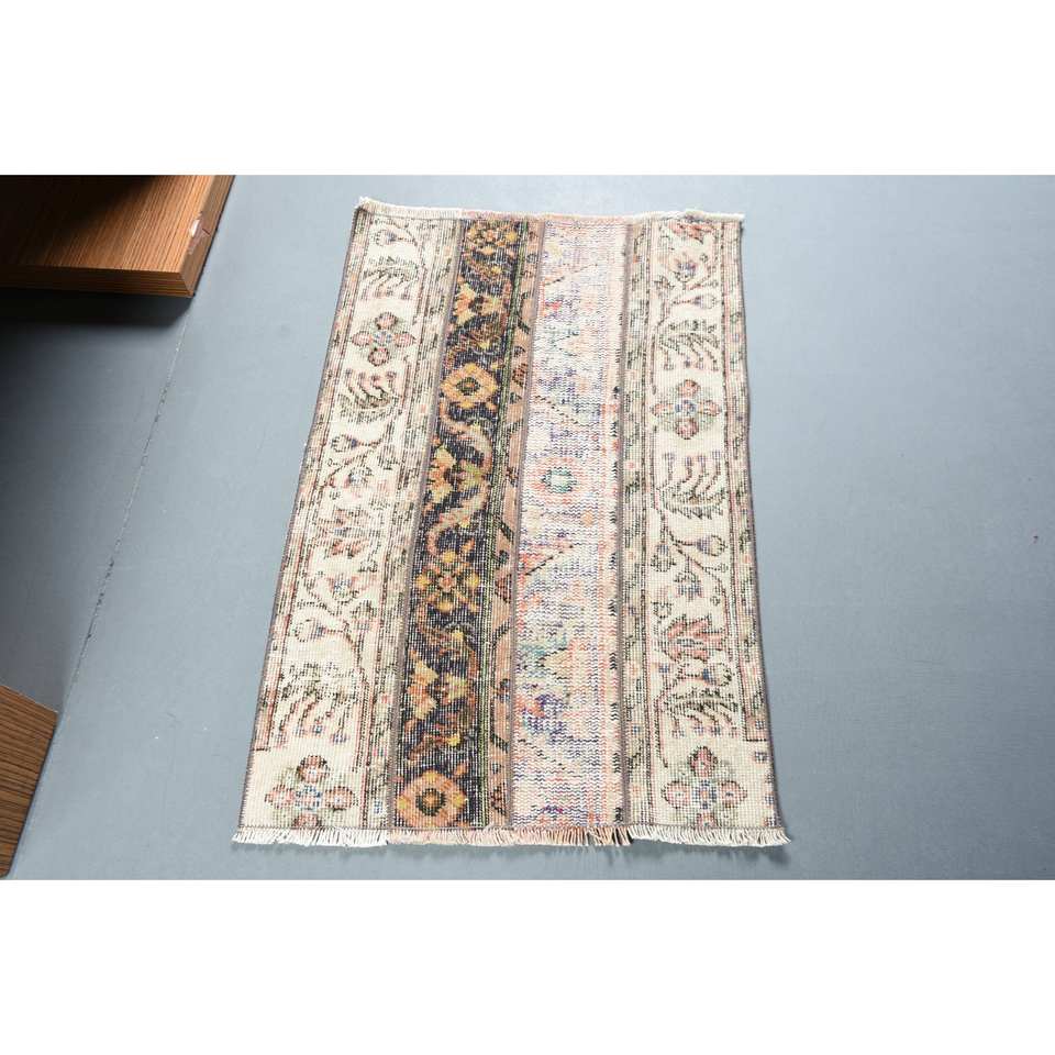 พรมขนสัตว์ตุรกีสีเบจคลาสสิก ขนาด 2.1 x 3.2 ฟุต ลายปะติดปะต่อ เป็นมิตรกับสิ่งแวดล้อม ขนปานกลาง เหมาะสำหรับทางเข้าบ้าน ห้องนั่งเล่น ห้องนอน รูปทรงสี่เหลี่ยมผืนผ้า