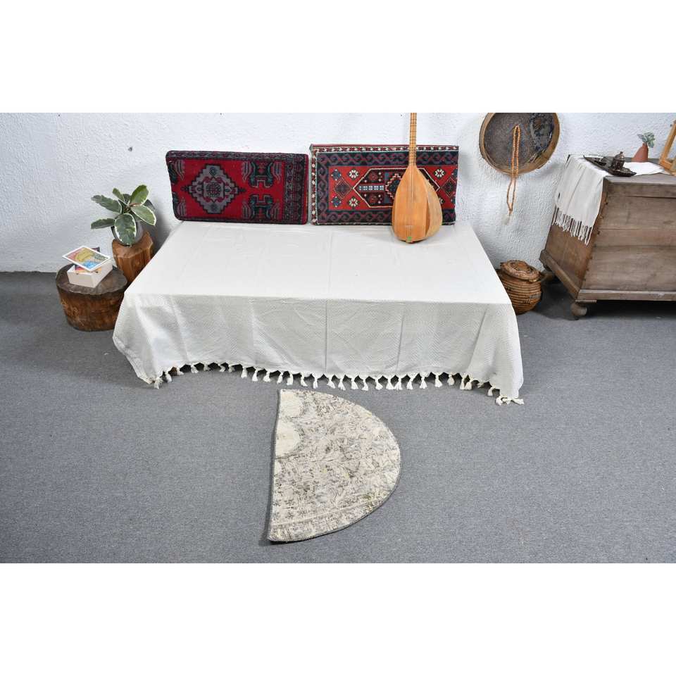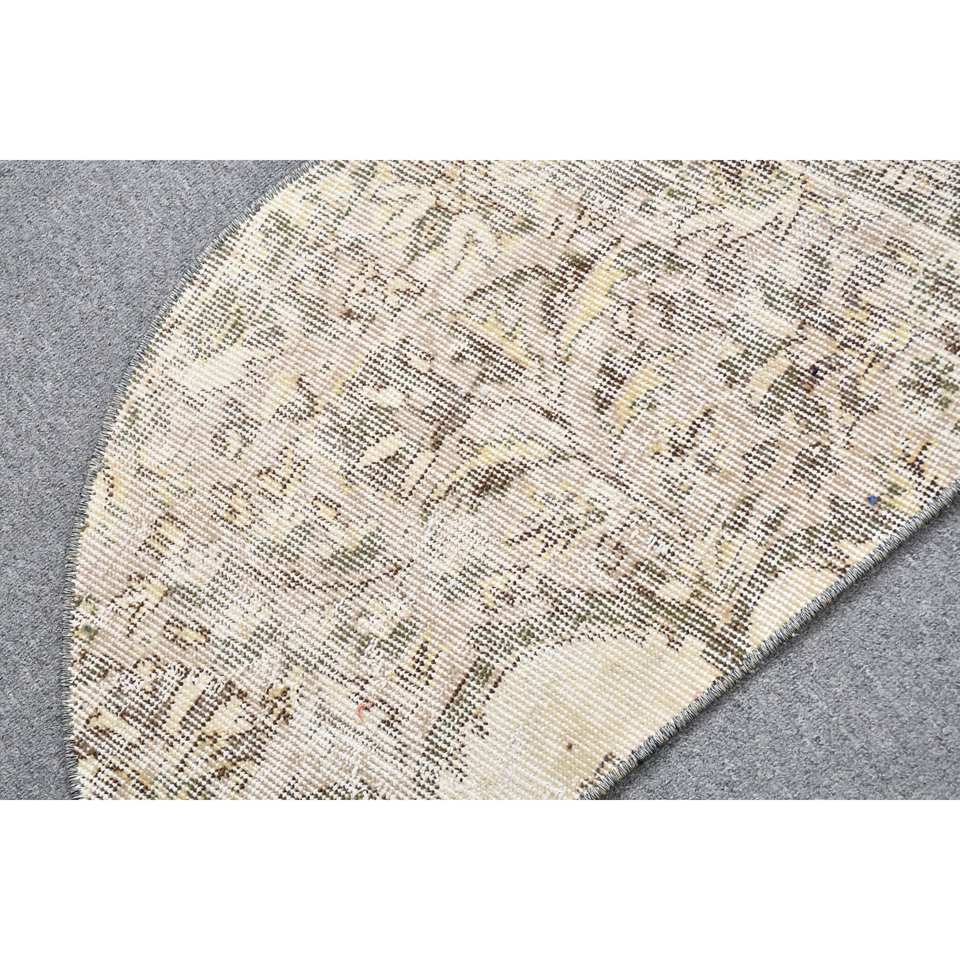 พรมขนสัตว์ตุรกีสีเบจ2.5 x 1.5ft คลาสสิกดีไซน์แบบเย็บปะติดปะต่อกันสำหรับเข้าห้องนั่งเล่นห้องนอนห้องโถงรูปสี่เหลี่ยมผืนผ้าทำจากน้ำยาง