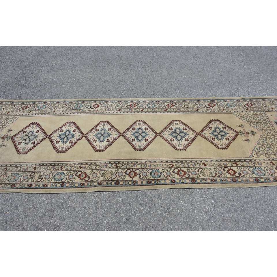 พรมข้างเตียงทำด้วยมือสีเบจ3.5 x 10.9ft คลาสสิกพรมยางเย็บปะติดปะต่อกันทรงสี่เหลี่ยมผืนผ้าสำหรับห้องนั่งเล่นพรมยางสำหรับวัยรุ่น