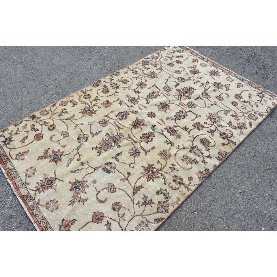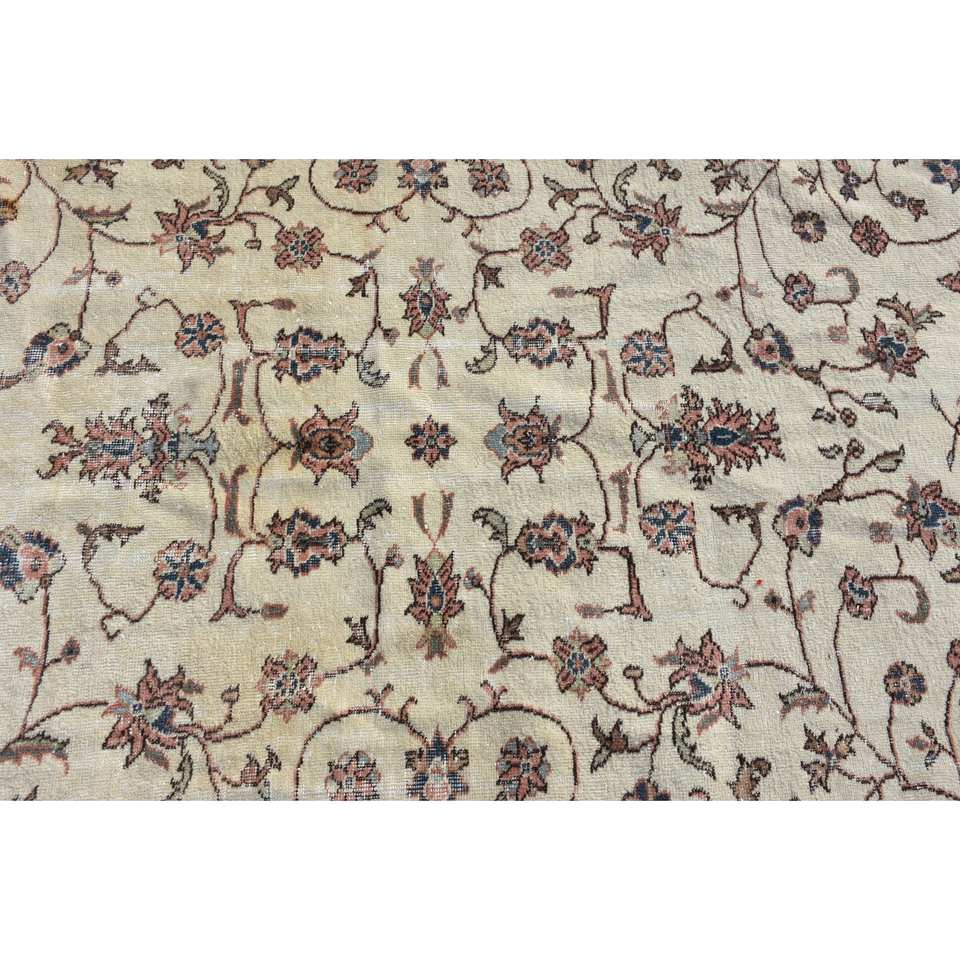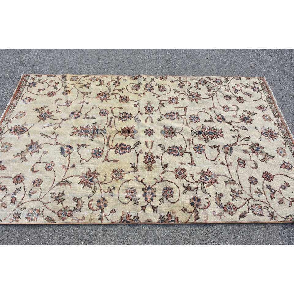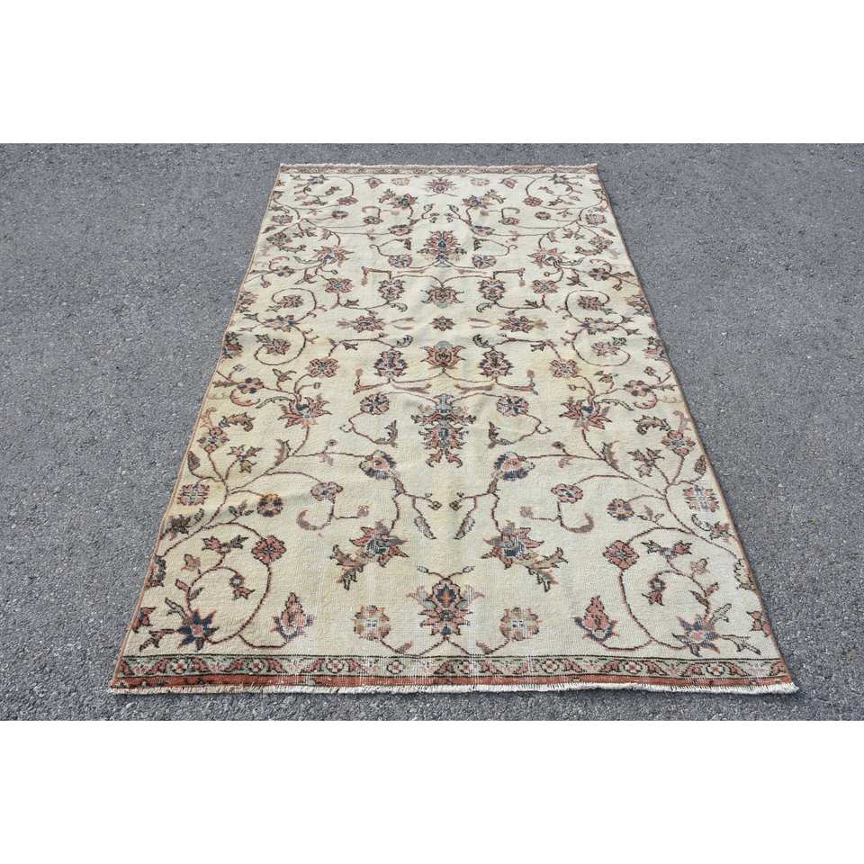 พรมขนสัตว์สีเบจ4.2x7ฟุตแบบคลาสสิกดีไซน์แบบตุรกีสำหรับห้องนั่งเล่นทางเข้าหรือด้านหลังเป็นยางใหม่