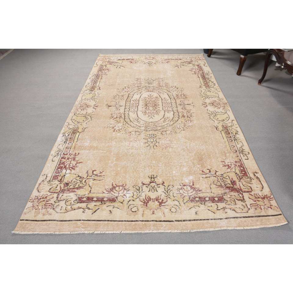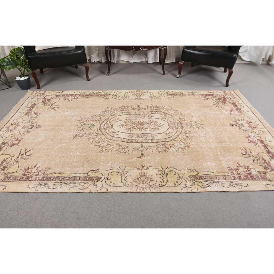 Classic Beige 5.2 X 9.1ft Woolen Turkish Rug Patchwork Design for Entryway Living Room Bedroom Rectangular Side Rug Latex