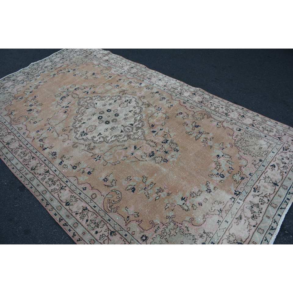 พรมขนสัตว์ตุรกี9.4ft สีเบจคลาสสิก5.4ชิ้นดีไซน์แบบเย็บปะติดปะต่อกันสำหรับทางเข้าห้องนั่งเล่นห้องนอนเบาะรองหลังทำจากยางรูปสี่เหลี่ยมผืนผ้า