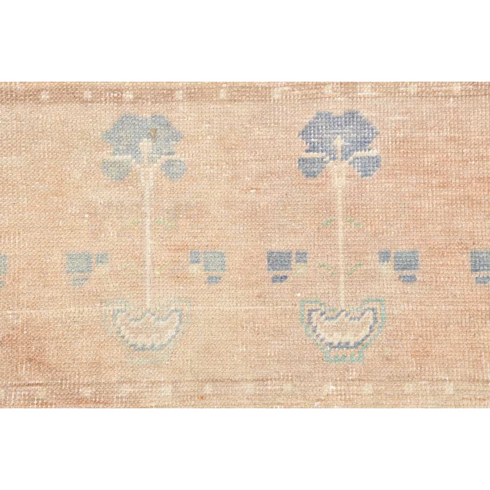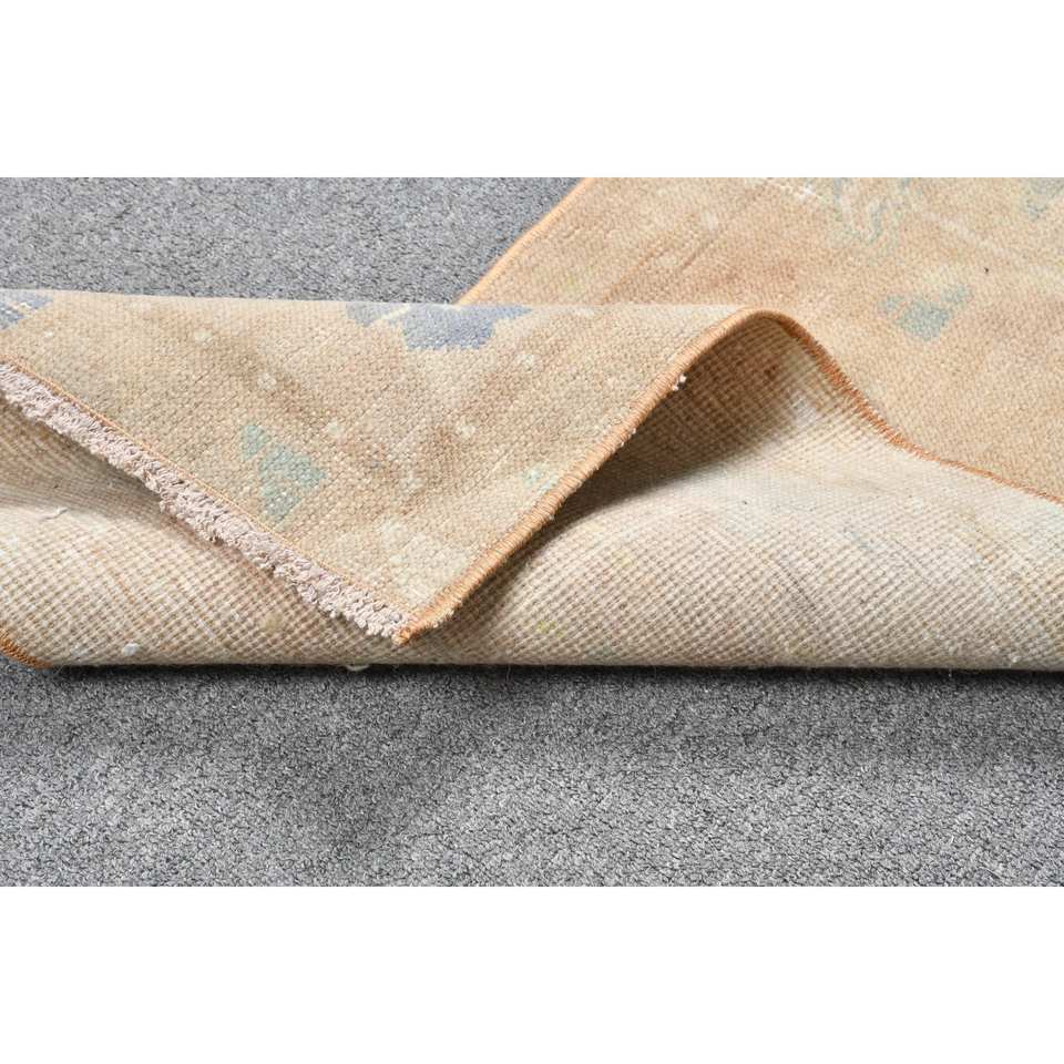 Classic Beige Blue Wool Rug 1.3 X 2.9 ft Handmade Turkish Patchwork Design Rectangular Hallway Pattern for Living Bedroom Latex