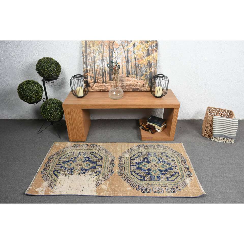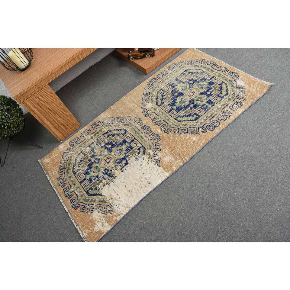 พรมขนสัตว์สีเบจสีฟ้าคลาสสิกขนาด2.6x5.1ฟุตงานเย็บปะแบบตุรกีทำด้วยมือสำหรับห้องนั่งเล่นห้องนอนห้องโถงสี่เหลี่ยมผืนผ้าน้ำยาง