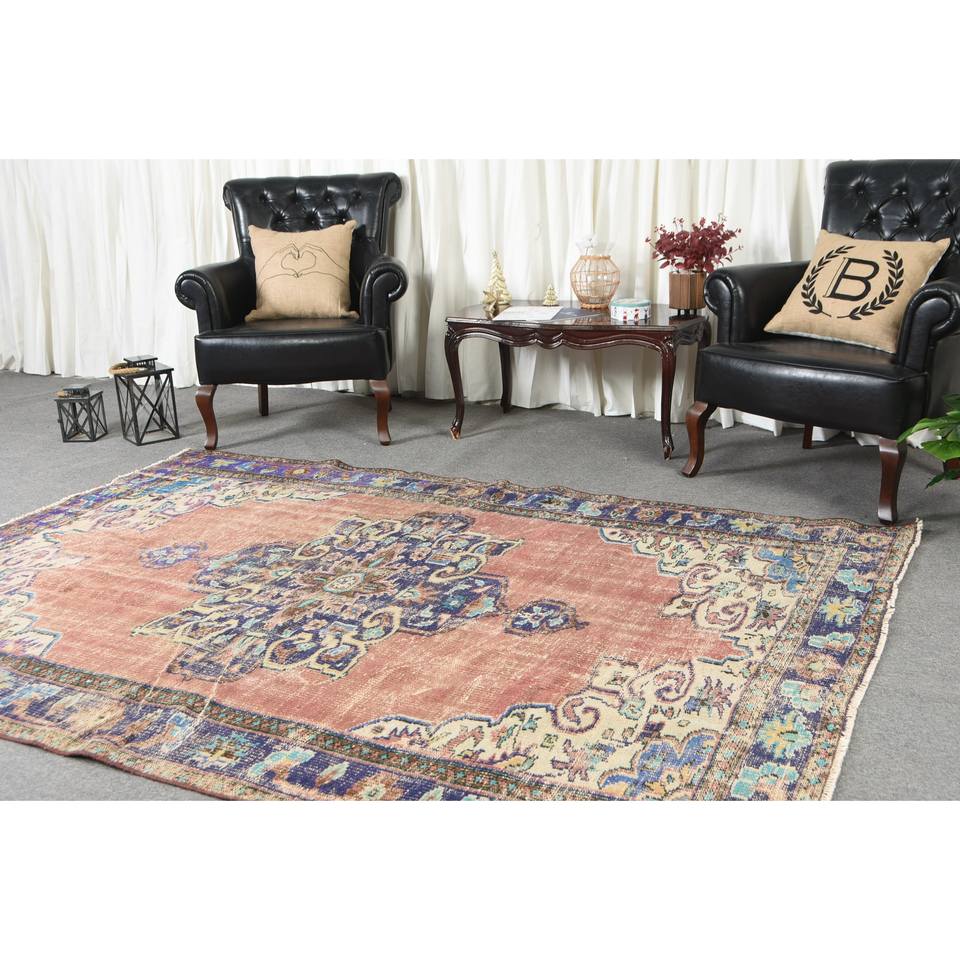 พรมขนสัตว์สีเบจสีฟ้าคลาสสิกขนาด5.9x8.4ฟุตงานเย็บปะแบบตุรกีทำด้วยมือสำหรับห้องนั่งเล่นห้องนอนห้องโถงสี่เหลี่ยมผืนผ้าน้ำยาง