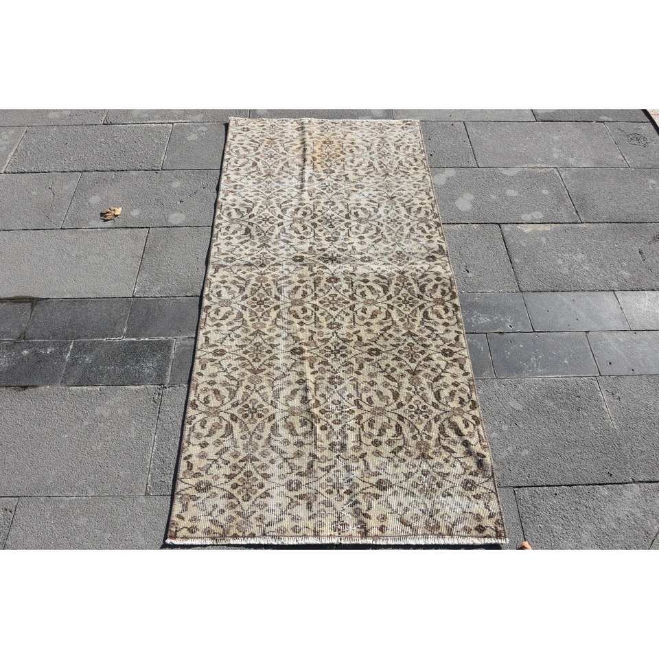 พรมขนสัตว์สีเบจสีน้ำตาล2.6x5.3ft แบบคลาสสิกงานเย็บปะติดปะต่อกันแบบตุรกีสำหรับทางเข้าห้องนั่งเล่นห้องนอนห้องโถงทำจากยาง