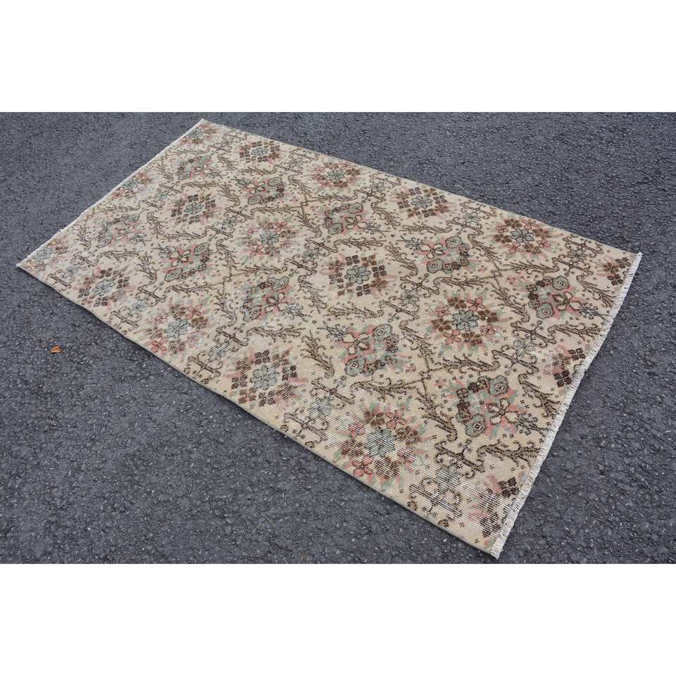 พรมขนแกะ6.3ft สีเบจสีน้ำตาล3.3 x คลาสสิกแบบวินเทจผ้าตัดต่อแบบตุรกีพรมสี่เหลี่ยมผืนผ้าสำหรับรองยางข้างเตียง