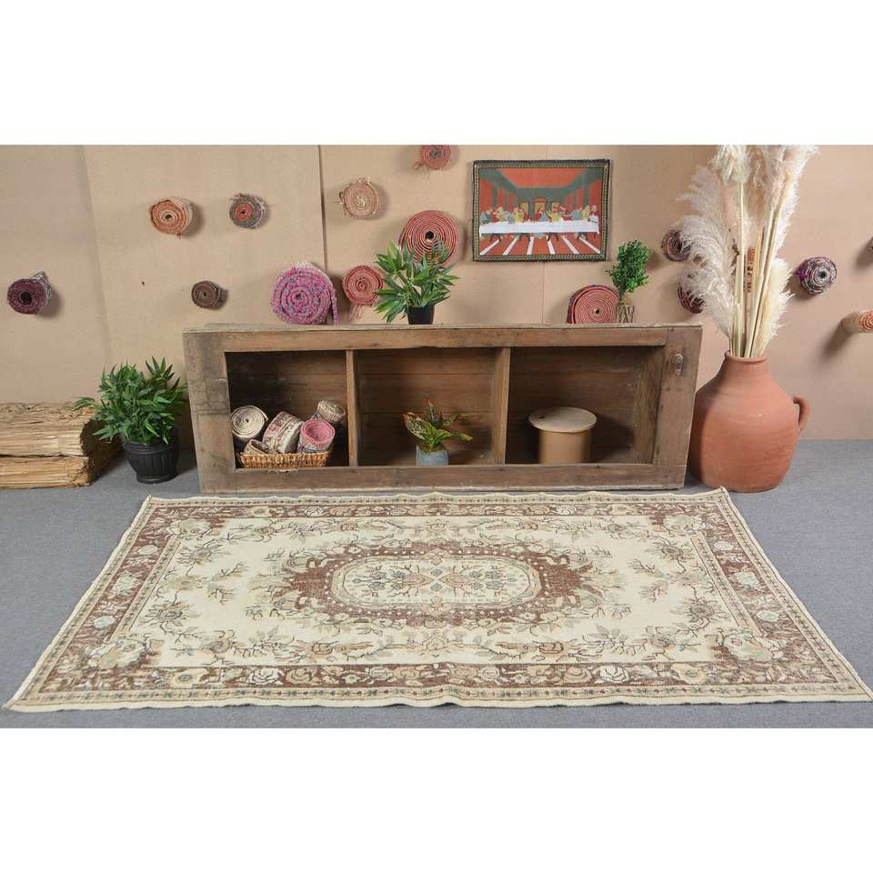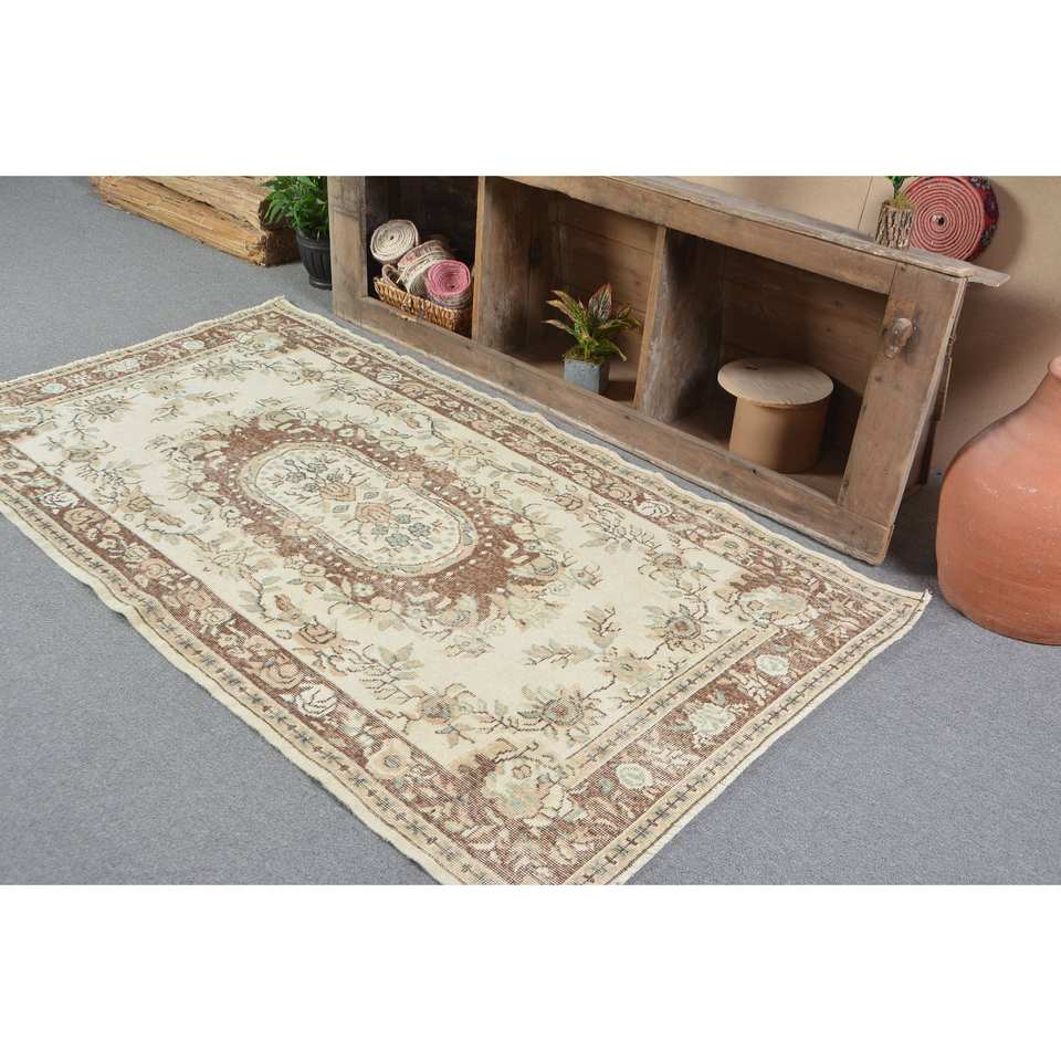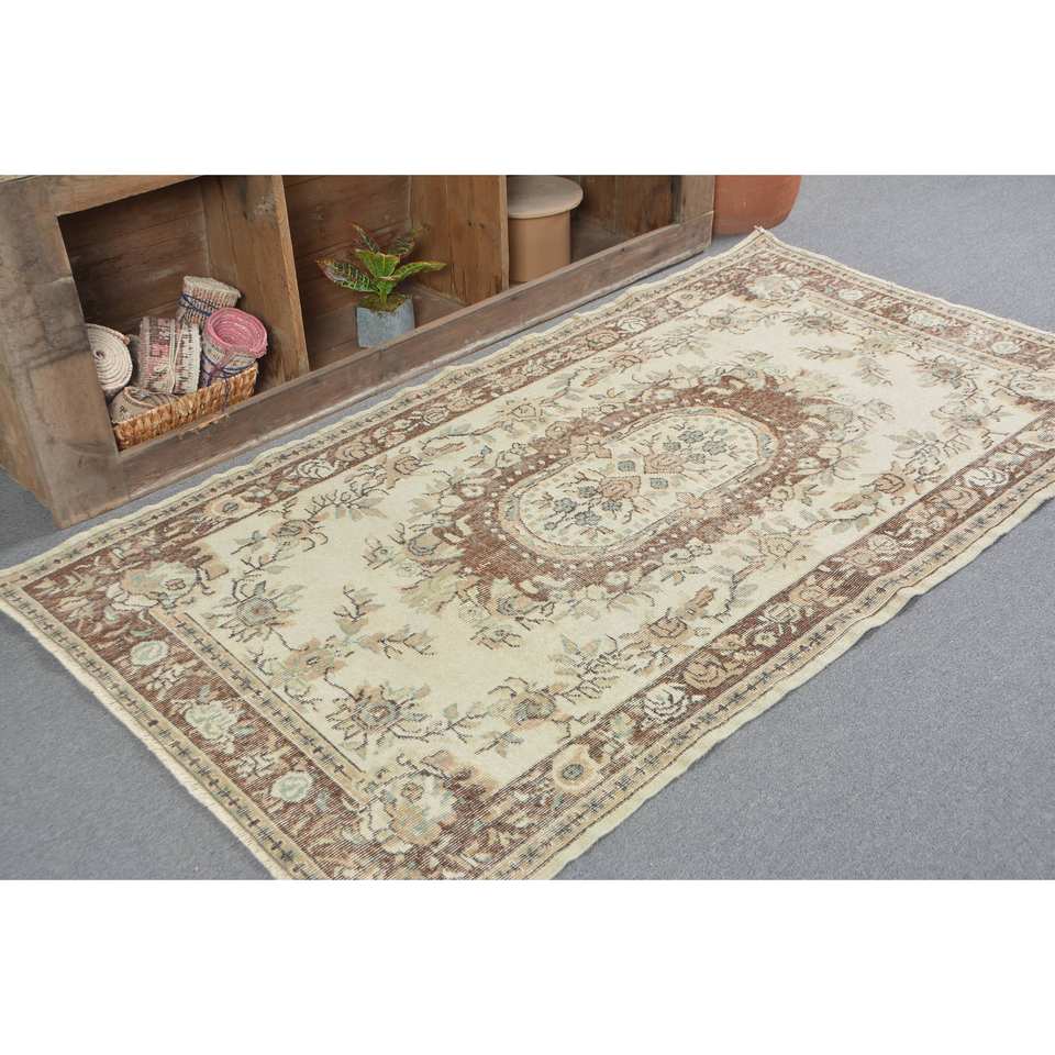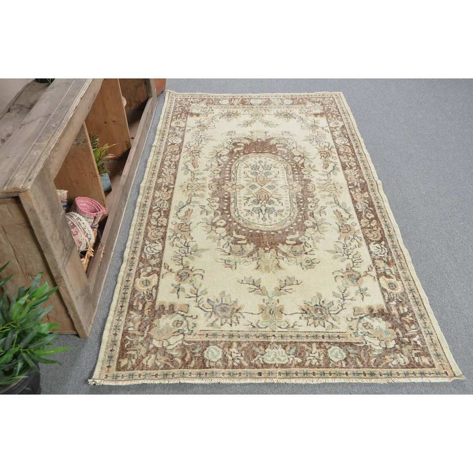 พรมขนแกะสไตล์ตุรกีโบราณสีเบจสีน้ำตาล3.8 x 7ft เย็บปะติดปะต่อกันพื้นที่ขนาดใหญ่สำหรับห้องโถงห้องนอนยางสี่เหลี่ยมห้องข้างเตียง
