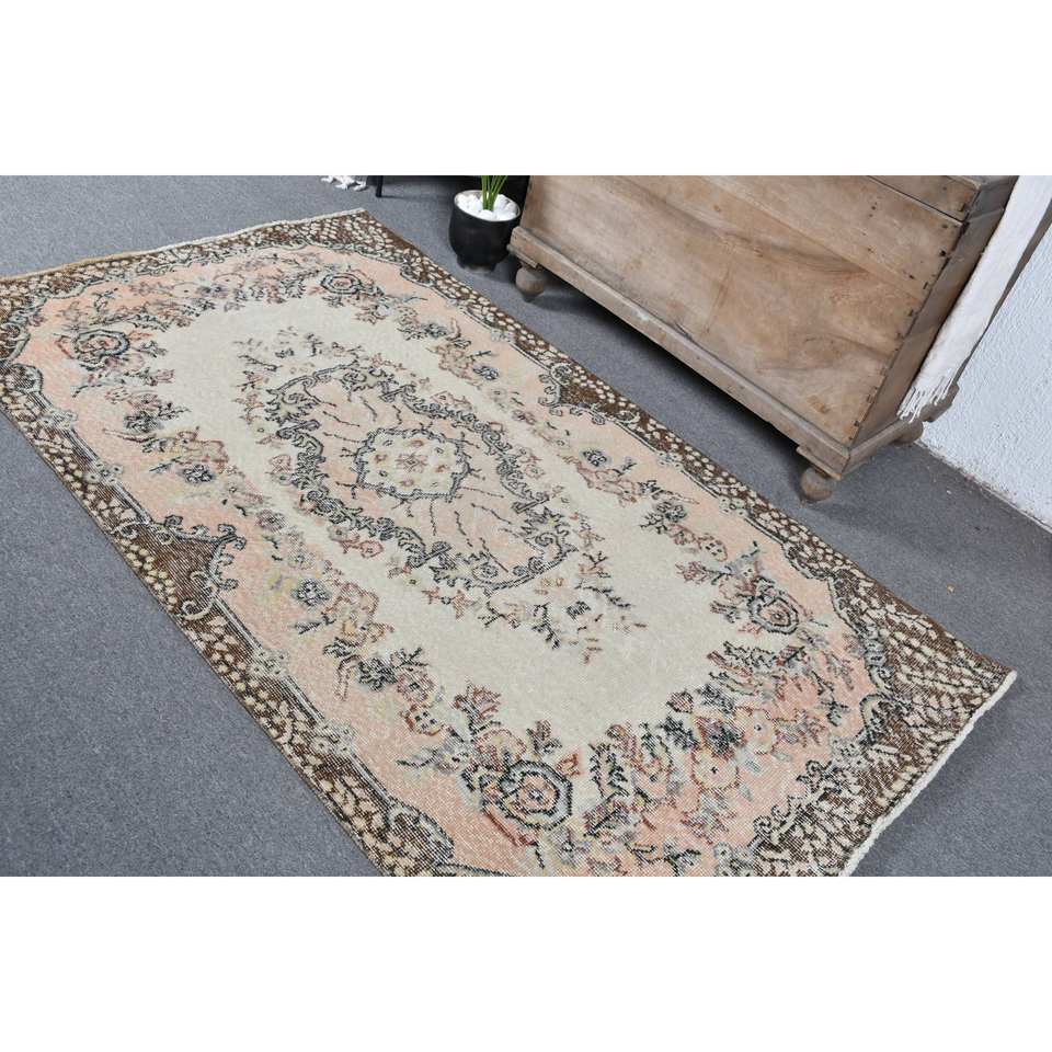 พรมขนสัตว์6.6ft สีเบจสีน้ำตาลคลาสสิกขนาด3.8 X แบบตุรกีดีไซน์แบบเย็บปะติดสำหรับทางเข้าห้องนั่งเล่นหรือห้องนอน