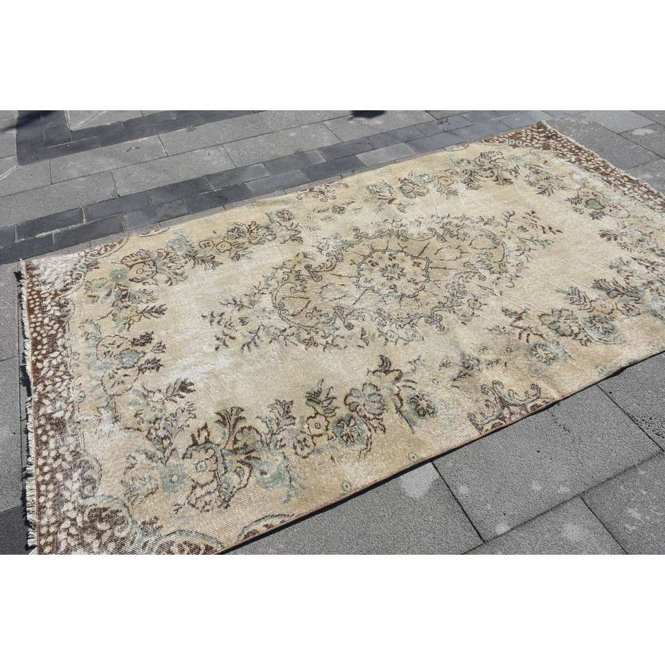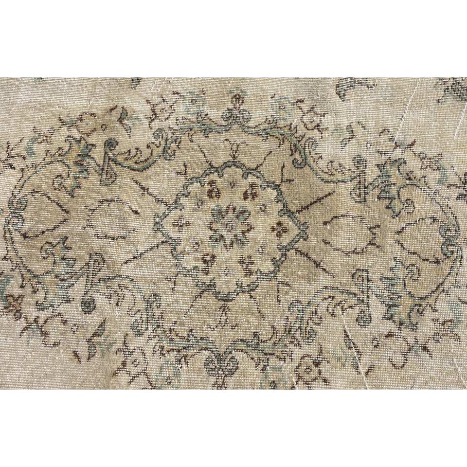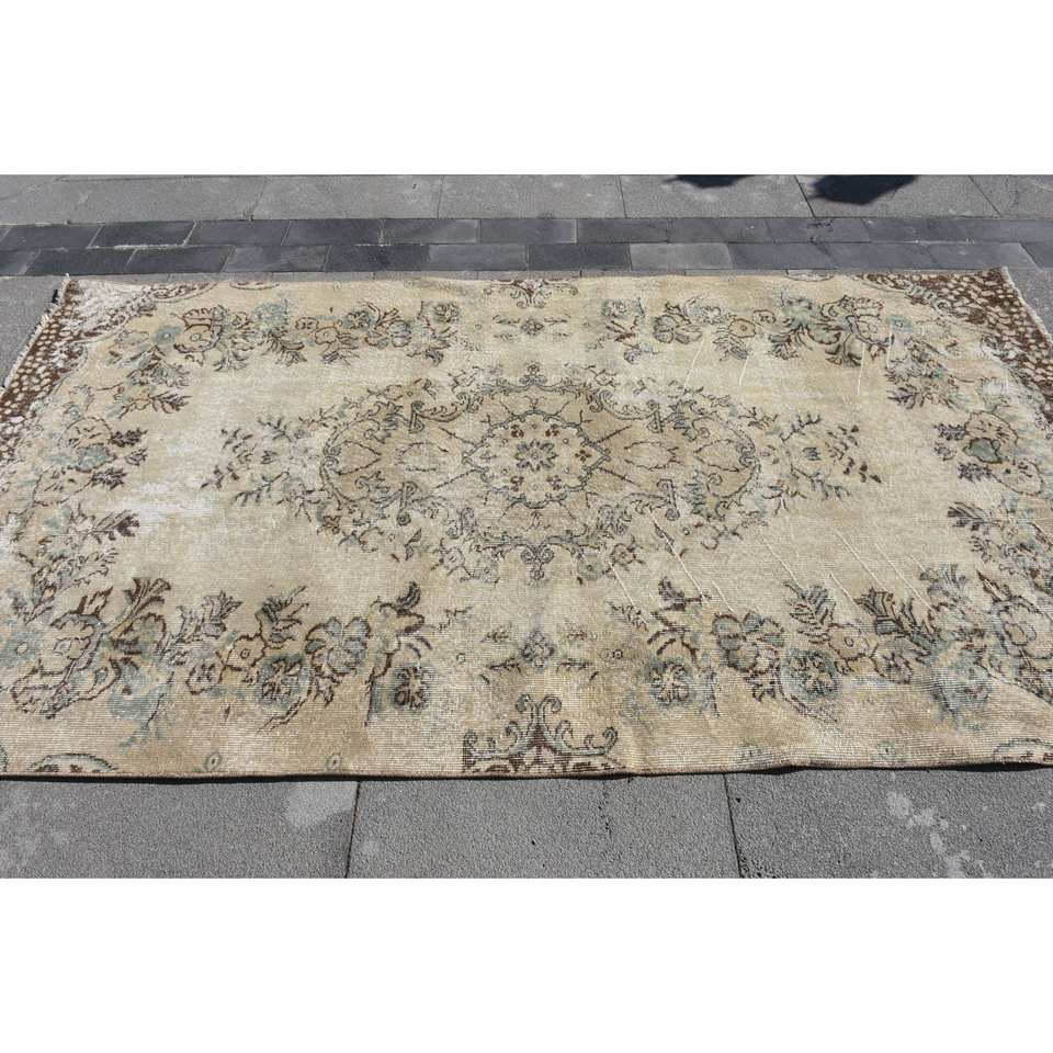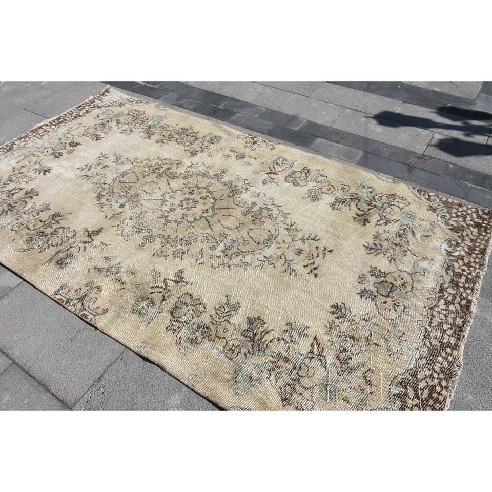 พรมขนสัตว์8.7ft สีเบจสีน้ำตาลคลาสสิกขนาด4.9 x แบบตุรกีดีไซน์แบบเย็บปะติดสำหรับทางเข้าห้องนั่งเล่นหรือห้องนอน