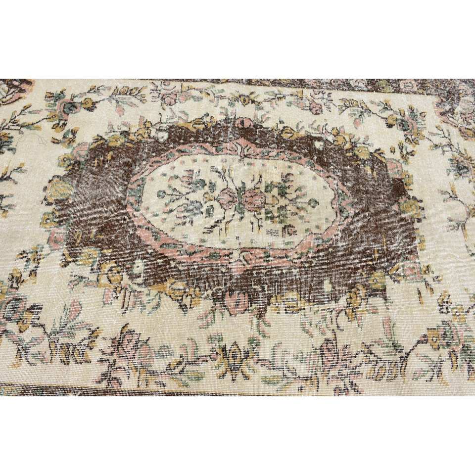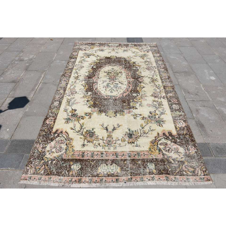 พรมขนสัตว์8.5ft สีเบจสีน้ำตาลคลาสสิกขนาด4.9 x ดีไซน์แบบเย็บปะติดปะต่อกันแบบตุรกีสำหรับห้องนั่งเล่นห้องนอนห้องโถงทำจากยางทรงสี่เหลี่ยม
