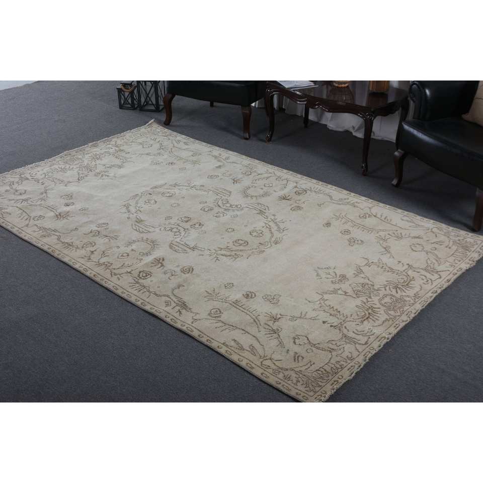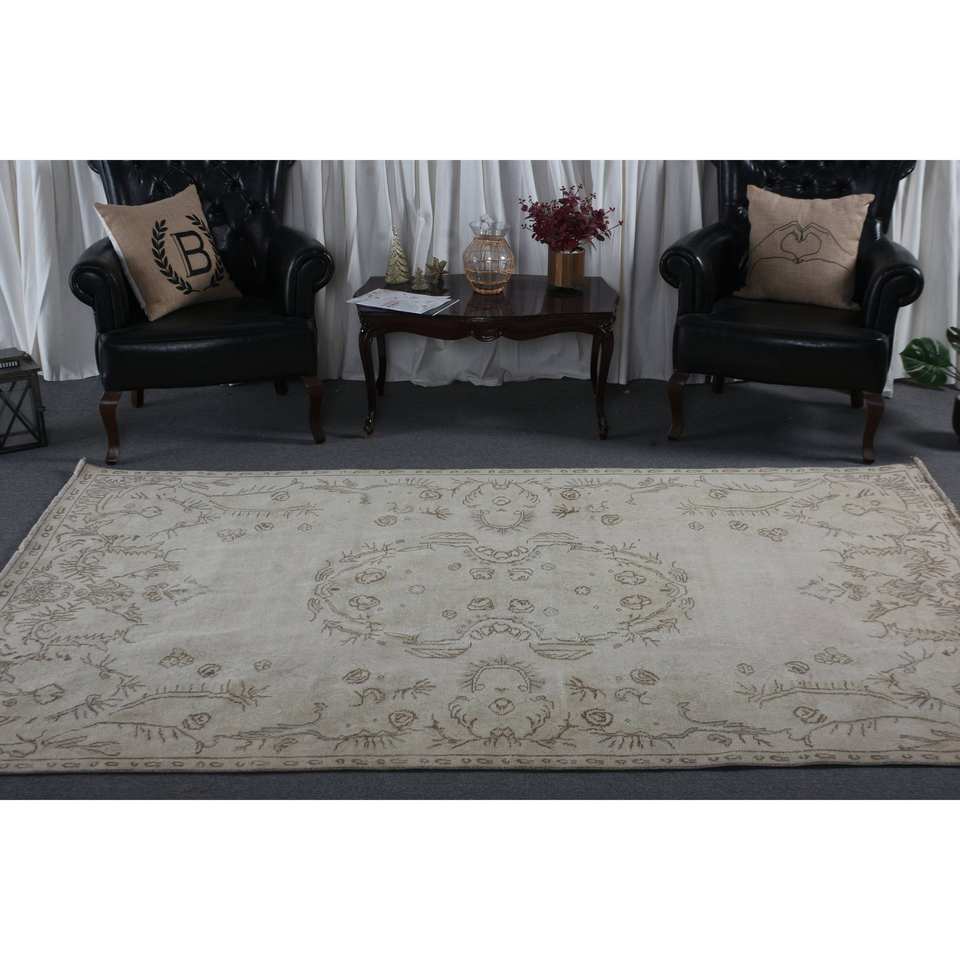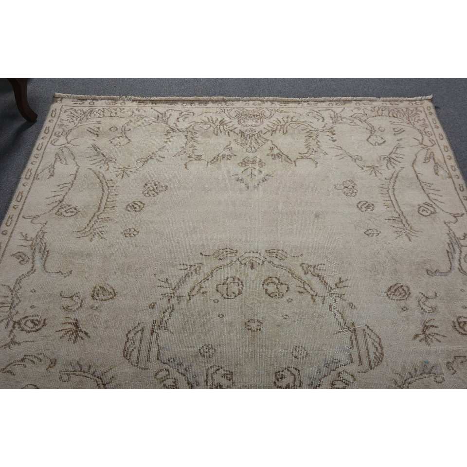 พรมขนสัตว์สีน้ำตาลเบจคลาสสิก ขนาด 5.4 x 9.1 ฟุต เป็นมิตรกับสิ่งแวดล้อม ขนปานกลาง ดีไซน์แบบต่อผ้าสไตล์ตุรกี เหมาะสำหรับห้องรับประทานอาหาร รูปทรงสี่เหลี่ยมผืนผ้า ทำจากยางลาเท็กซ์