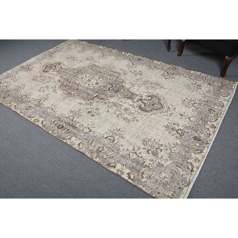 พรมขนแกะ9ft สีเบจสีน้ำตาล5.8 X แบบคลาสสิกพรมงานแฮนด์เมดแบบเย็บปะแบบตุรกีสำหรับห้องนั่งเล่นพรมหลังสำหรับวัยรุ่น